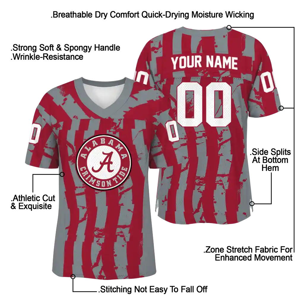 Alabama Crimson Tide Jersey – Custom Stripe Splatter Crimson
