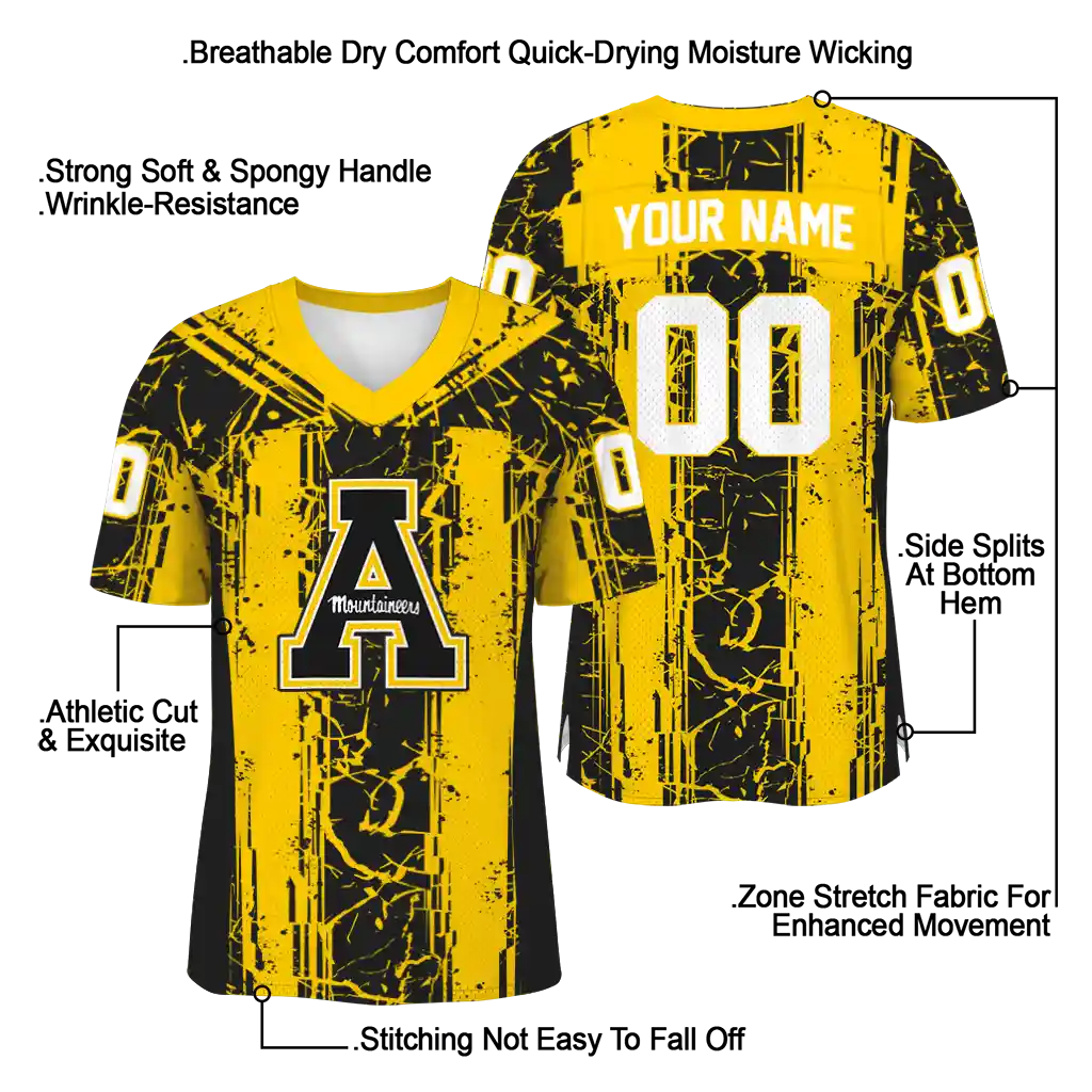 The Appalachian State Mountaineers Jersey – Custom Rugged Stripes Black delivers professional style and performance with the flexibility to make it uniquely yours. Engineered with breathable fabrics and moisture-wicking technology, it ensures you stay cool, dry, and comfortable—even in high-intensity games.