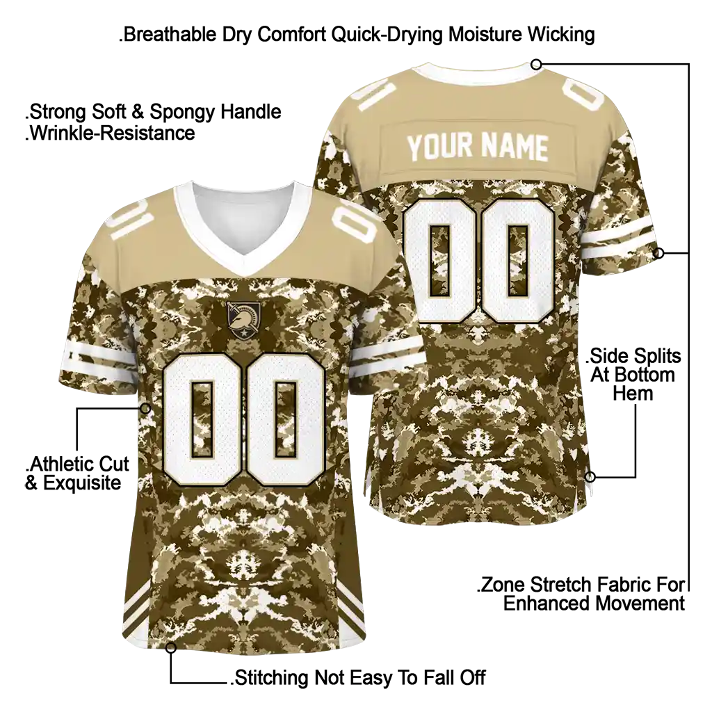 The Army Black Knights Jersey – Custom Mirrored Pattern Gold delivers professional style and performance with the flexibility to make it uniquely yours. Engineered with breathable fabrics and moisture-wicking technology, it ensures you stay cool, dry, and comfortable—even in high-intensity games.