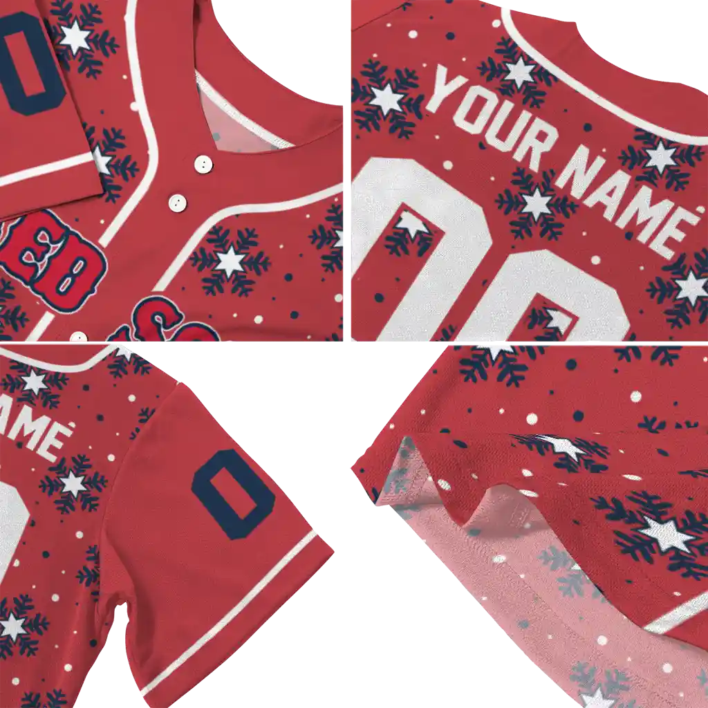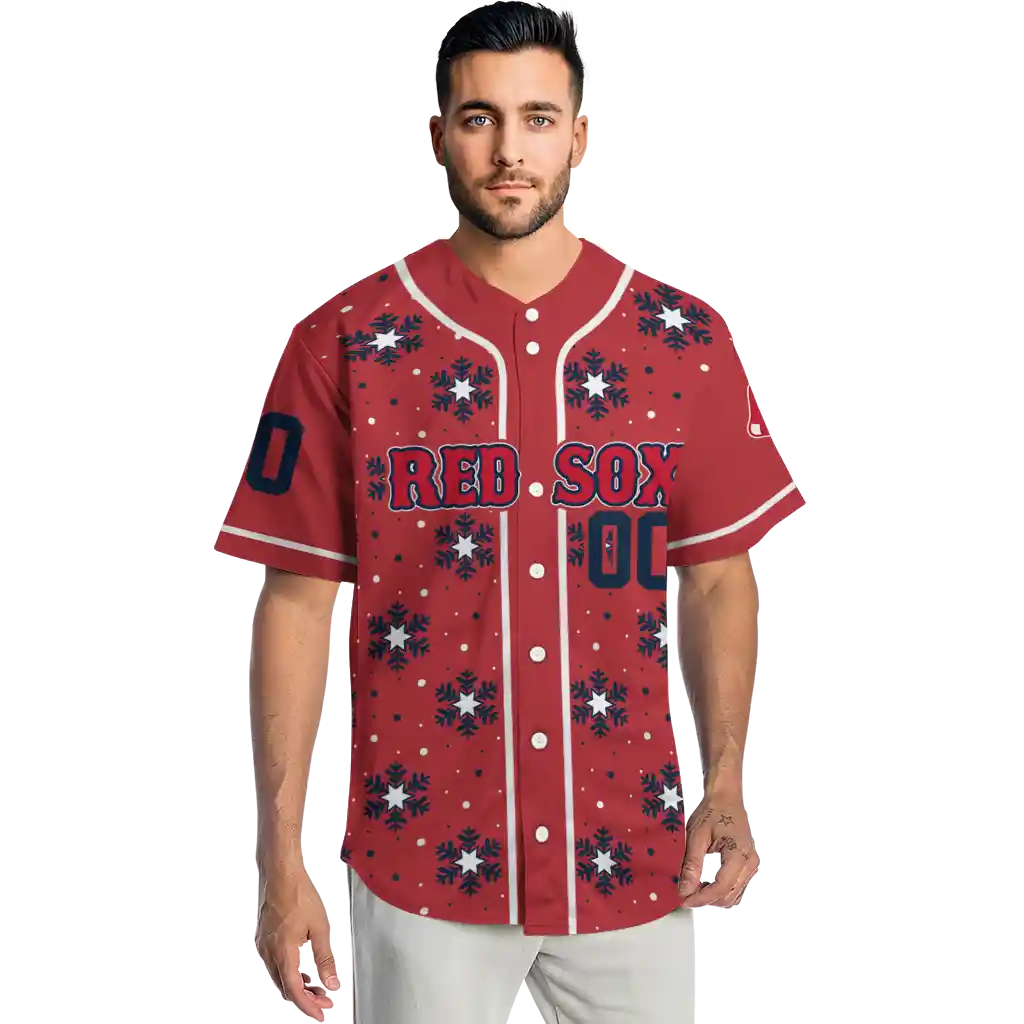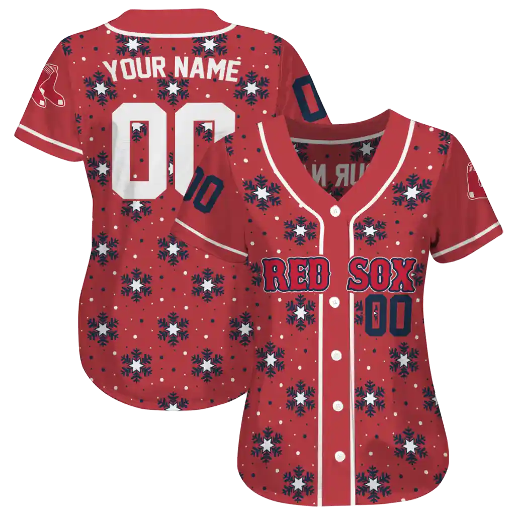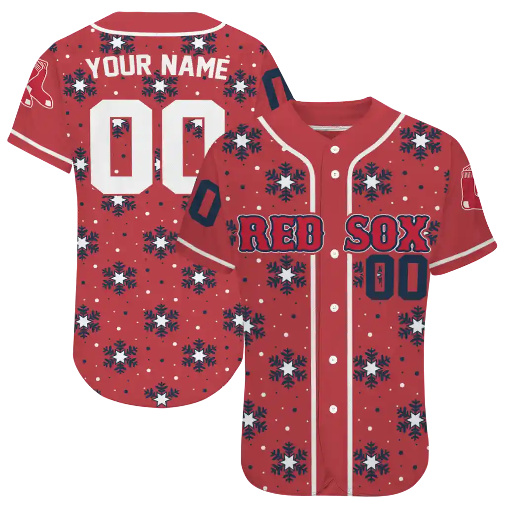 Boston Red Sox Jersey – Custom Snowflake Festive Red