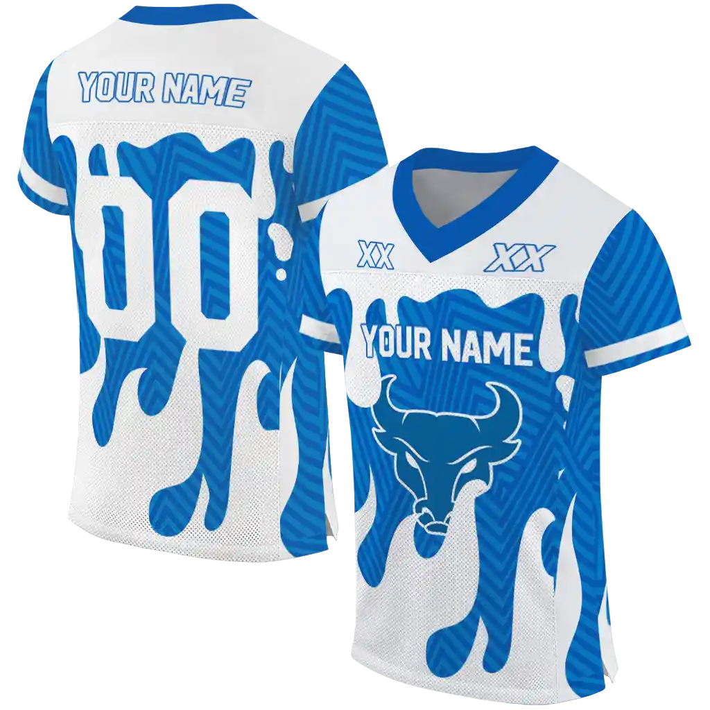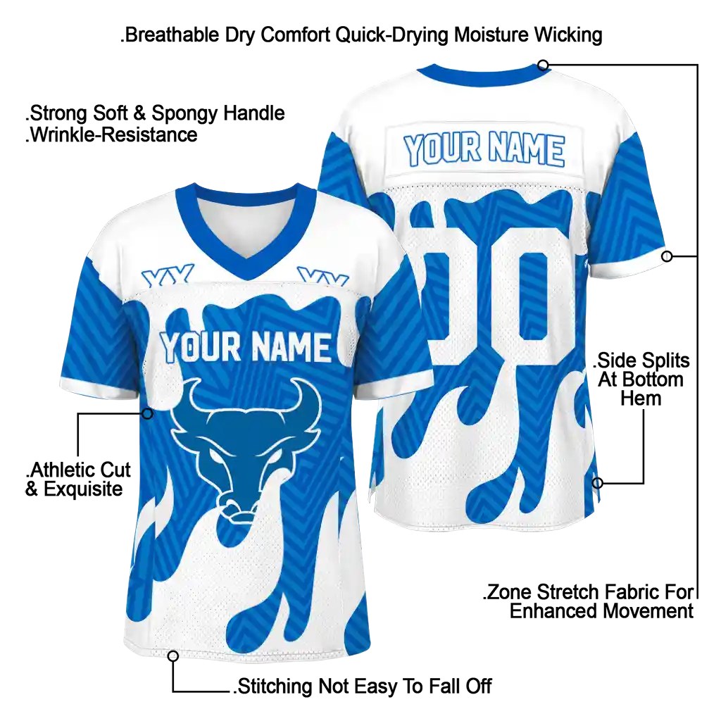 Buffalo Bulls Jersey – Custom Dripping Flames Royal Blue White