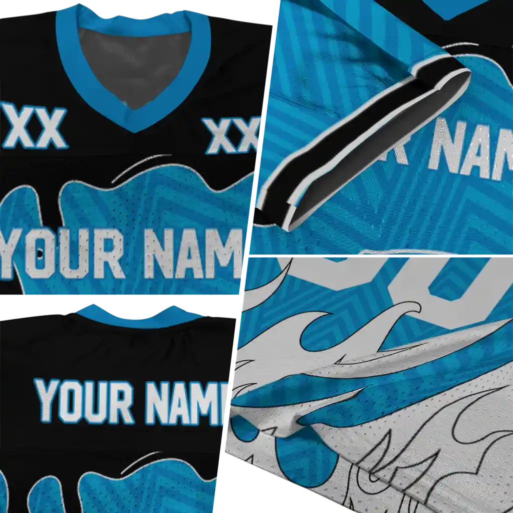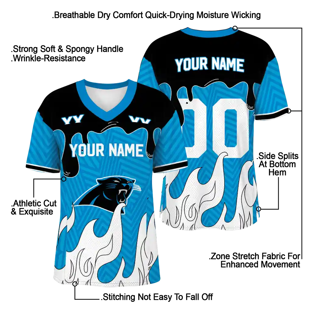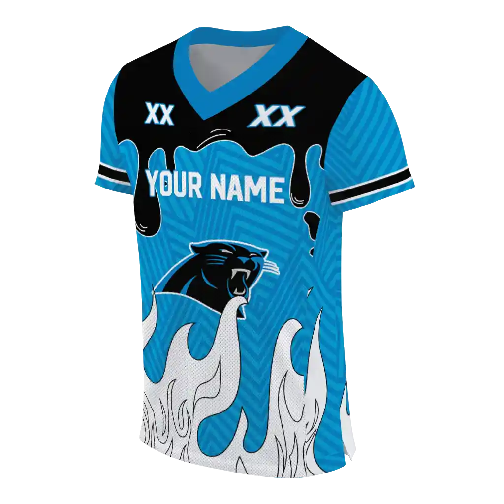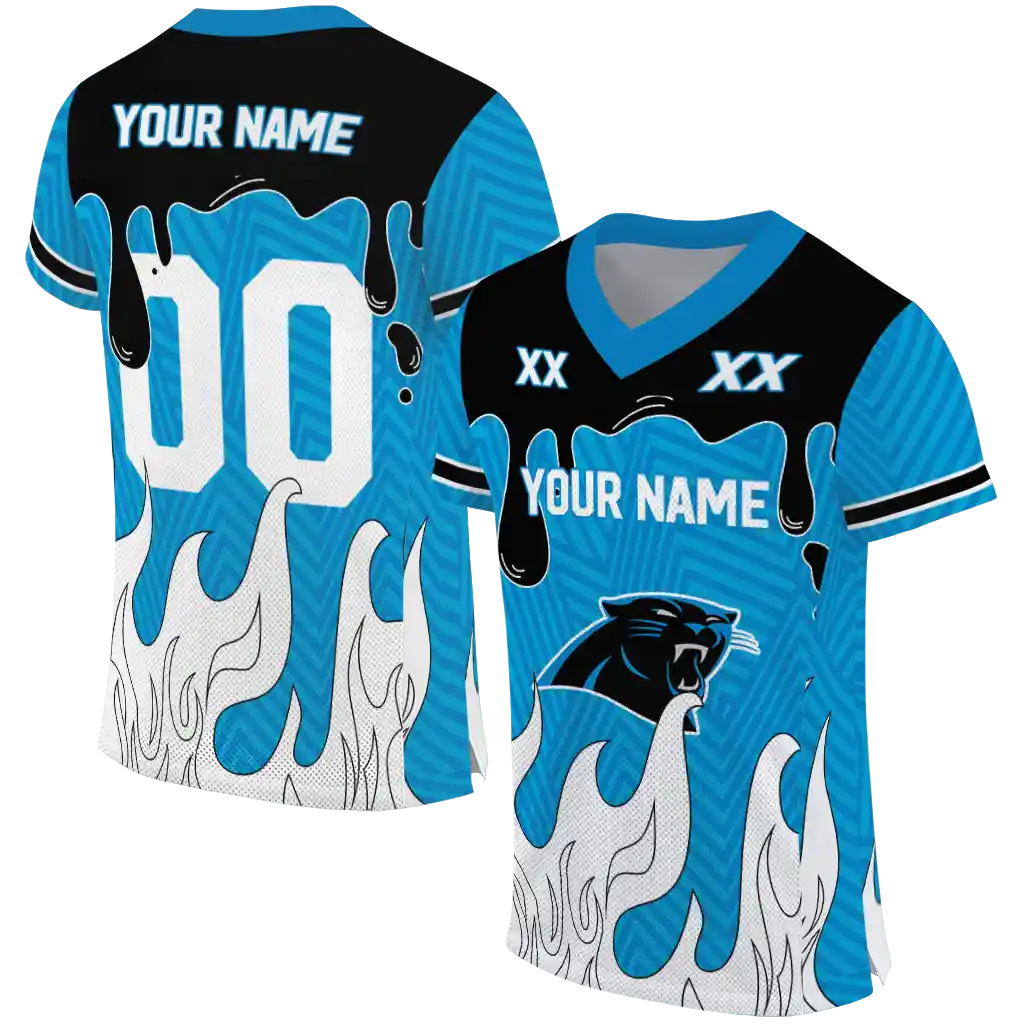 Carolina Panthers Jersey – Custom Dripping Flames Blue White