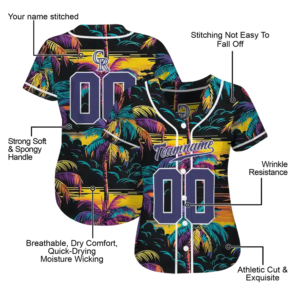 The Colorado Rockies Jersey – Custom Palm Nights Black and Yellow is engineered for fans who demand the perfect balance of style, comfort, and durability. Utilizing advanced sublimation technology, every inch of the fabric is printed with your custom design before being precision-cut and sewn to ensure a flawless, edge-to-edge visual impact.