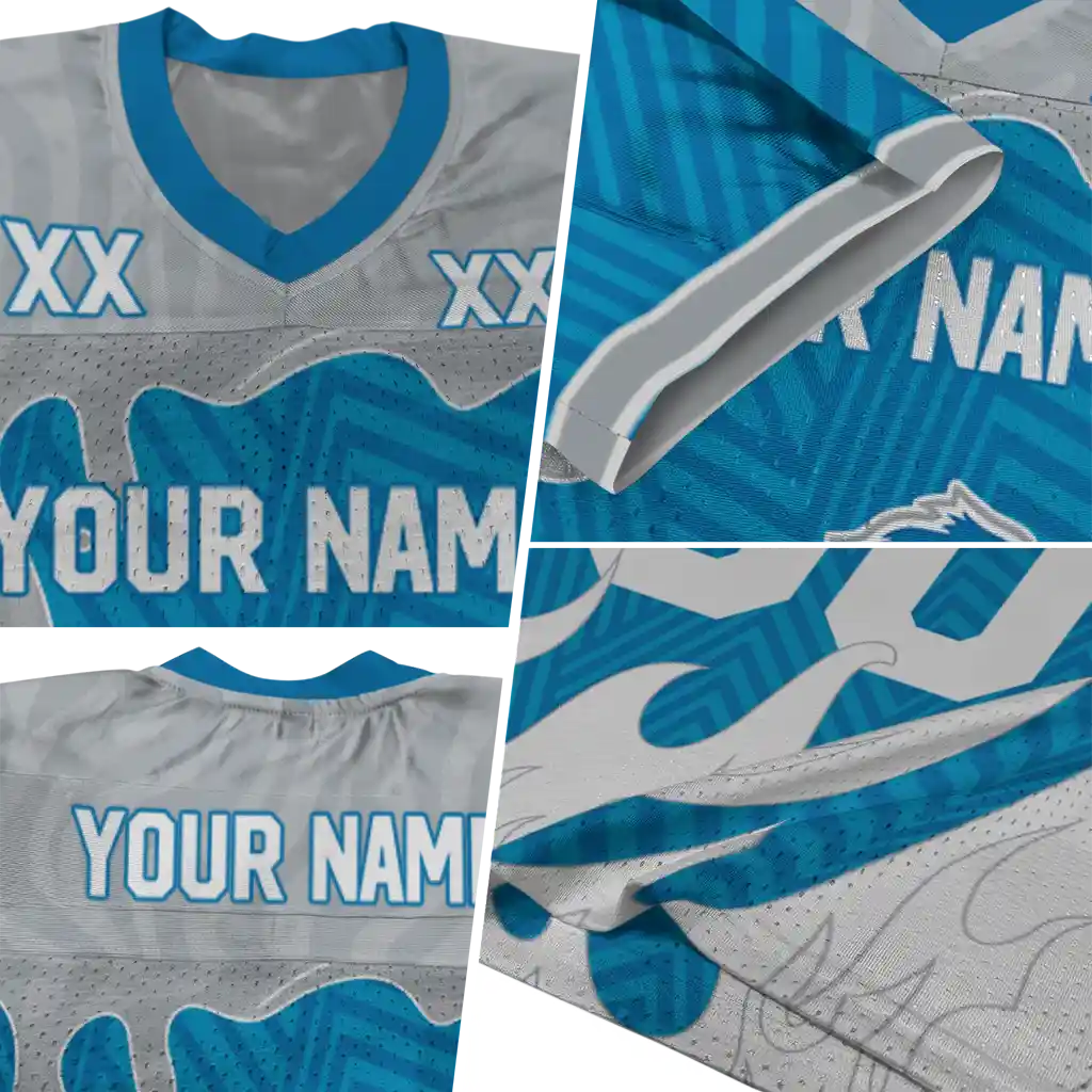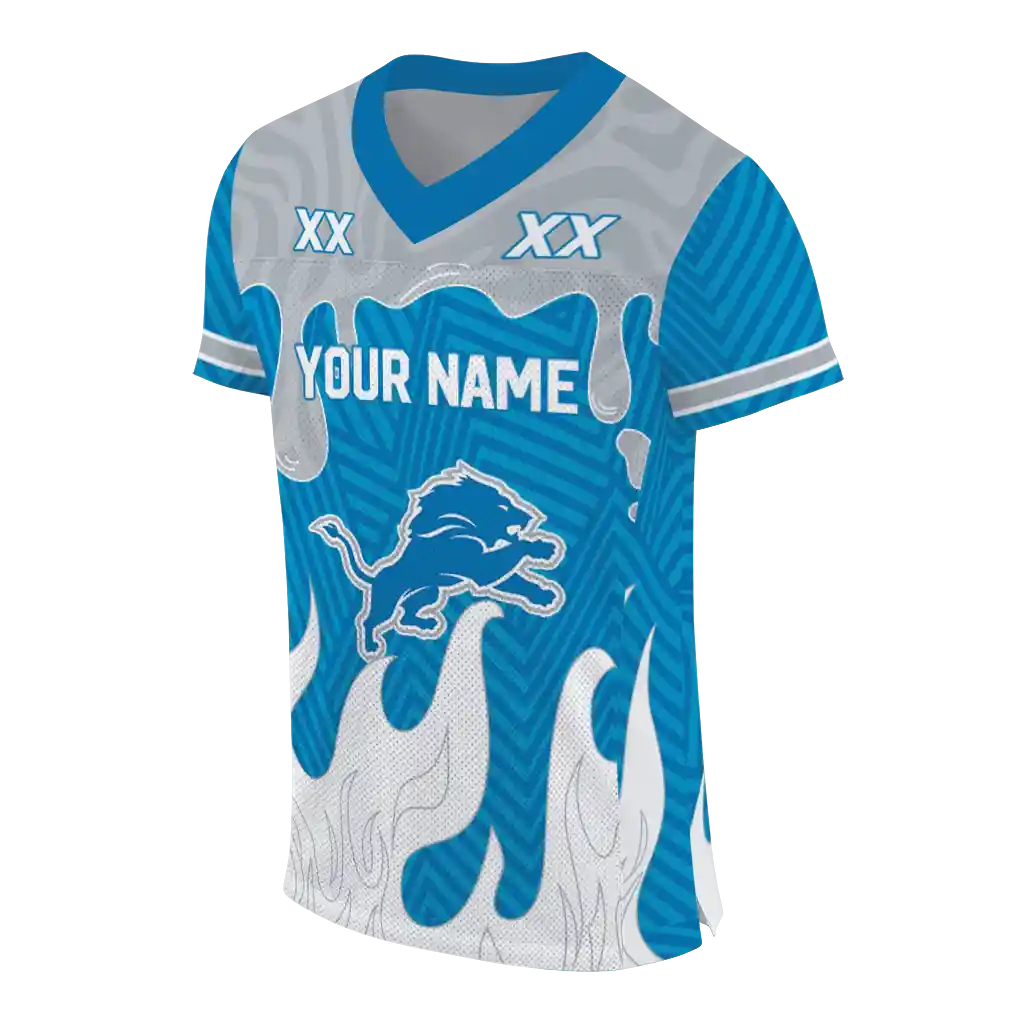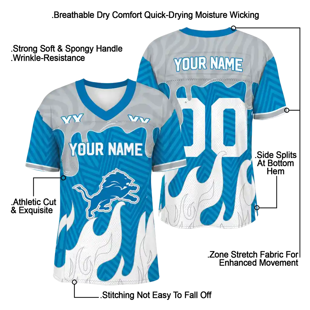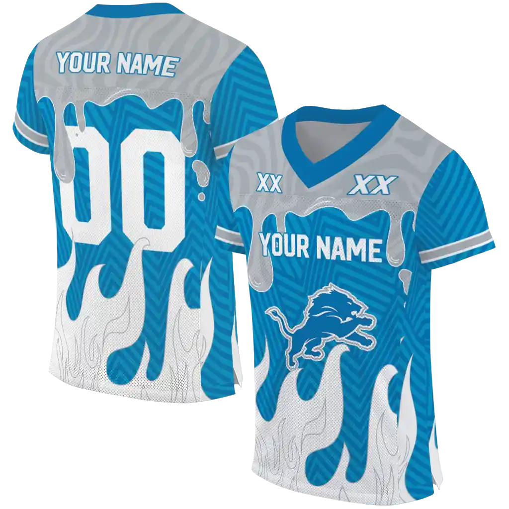 Detroit Lions Jersey – Custom Dripping Flames Blue White