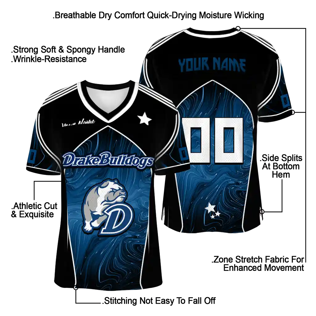 Drake Bulldogs Jersey – Custom Halftone Slant Blue Black
