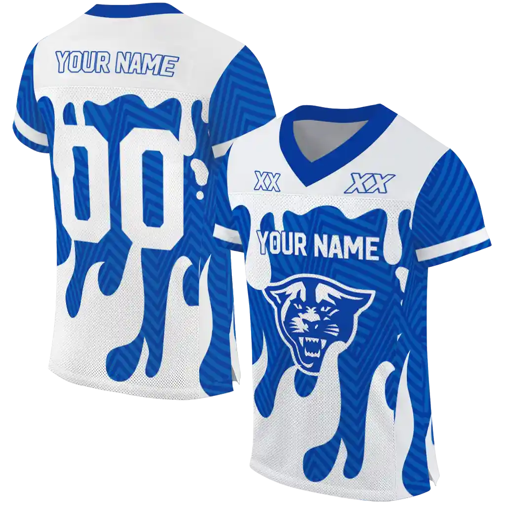 Georgia State Panthers Jersey – Custom Dripping Flames Blue White