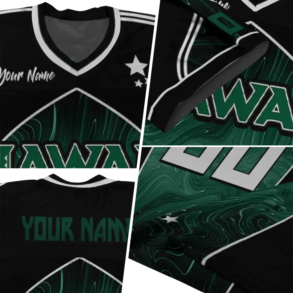 Hawaii Rainbow Warriors Jersey – Custom Halftone Slant Green Black