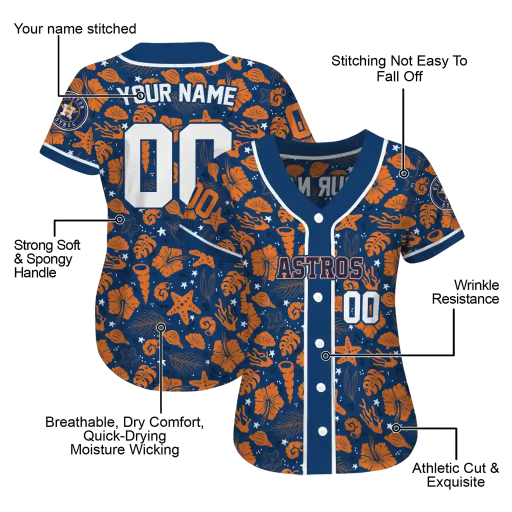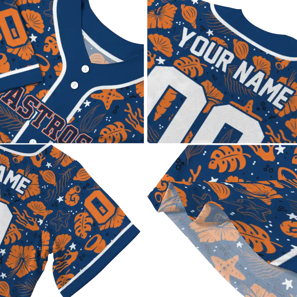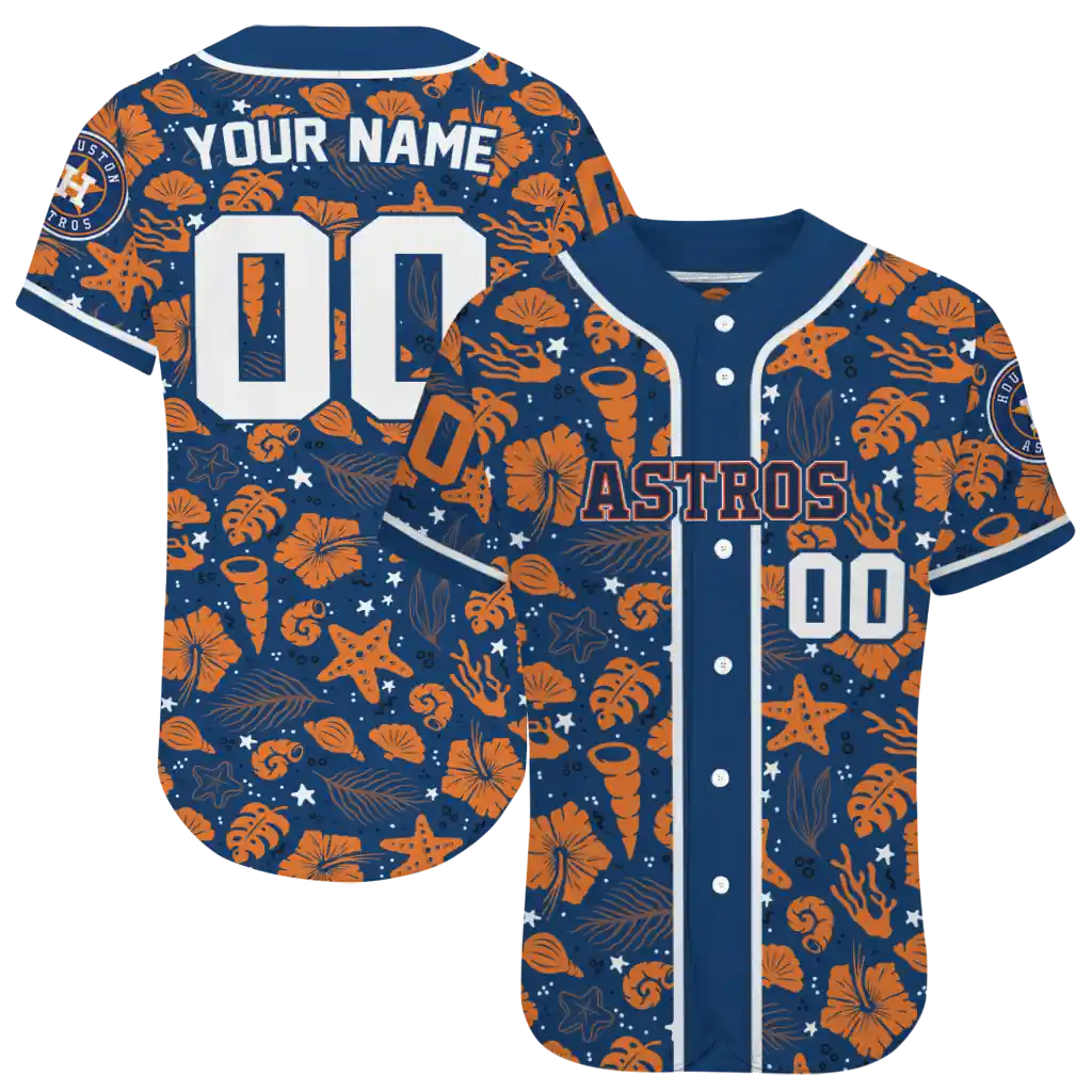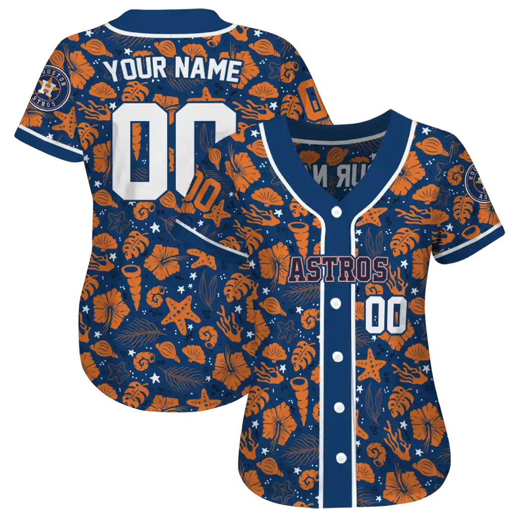 Houston Astros Jersey – Custom Tropical Hibiscus Seashells Blue