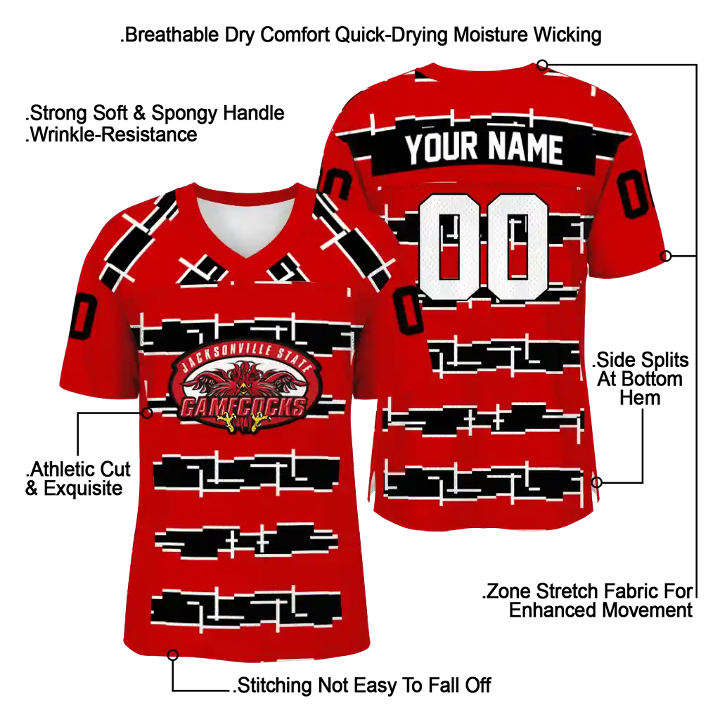 Jacksonville State Gamecocks Jersey – Custom Layered Grids Red