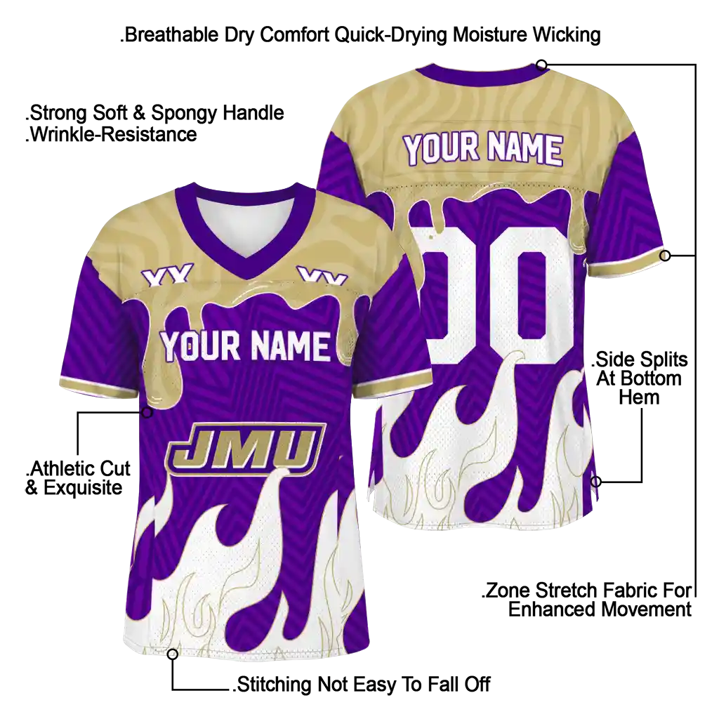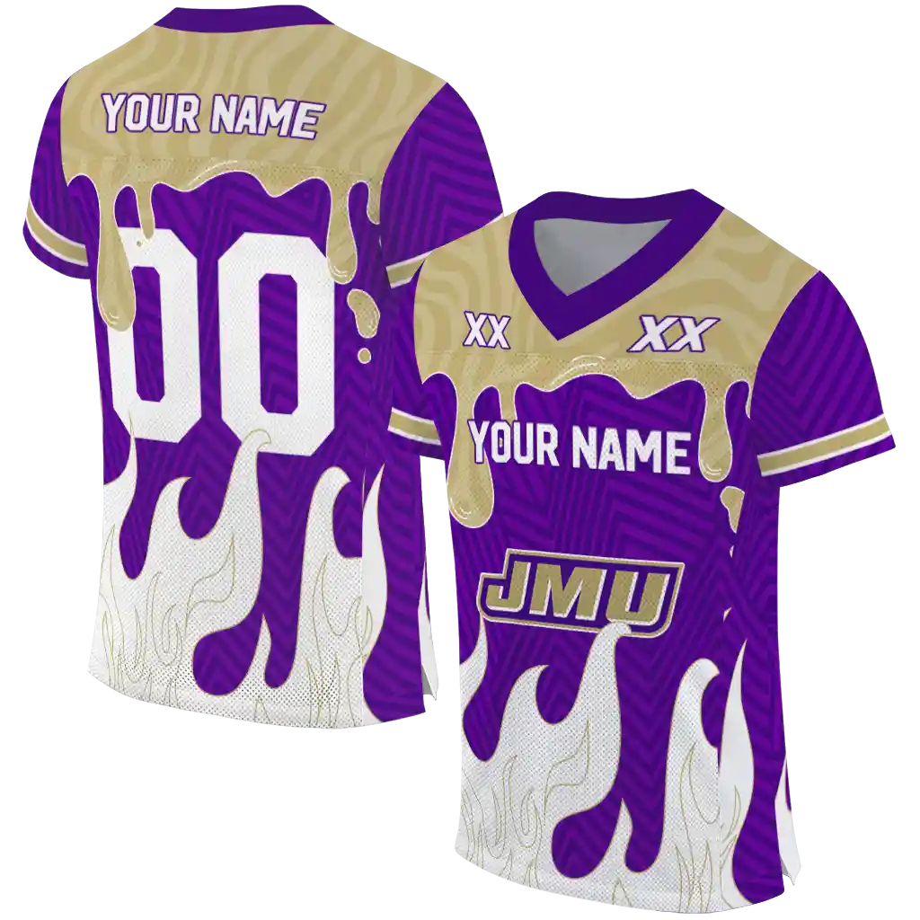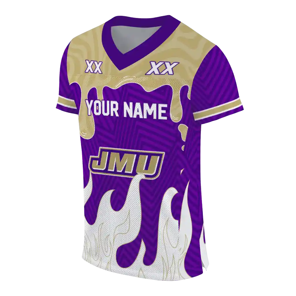 James Madison Dukes Jersey – Custom Dripping Flames Purple White