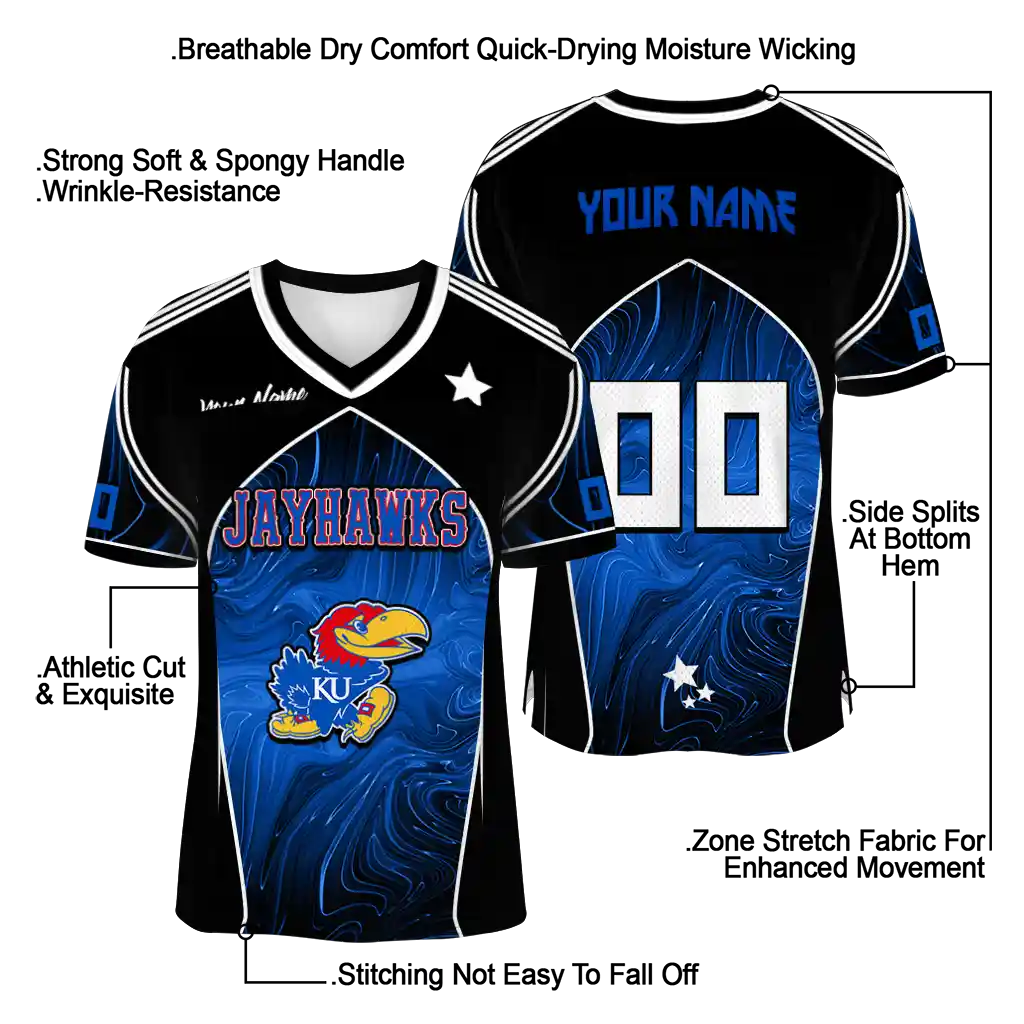 Kansas Jayhawks Jersey – Custom Halftone Slant Blue Black