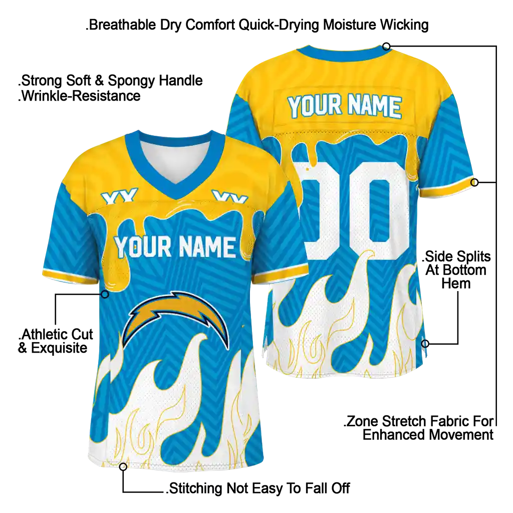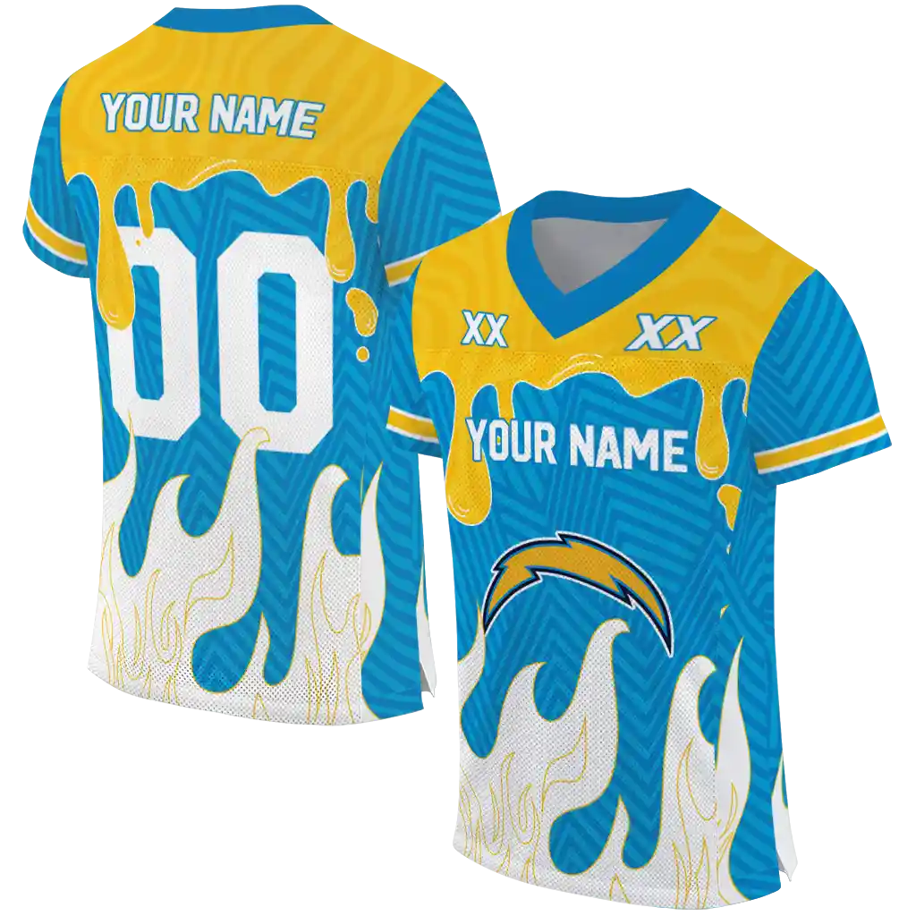 Los Angeles Chargers Jersey – Custom Dripping Flames Blue White