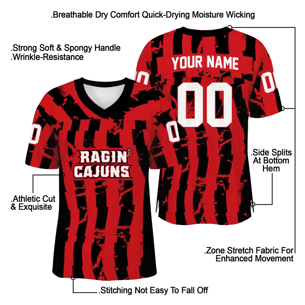 Louisiana Ragin’ Cajuns Jersey – Custom Stripe Splatter Red