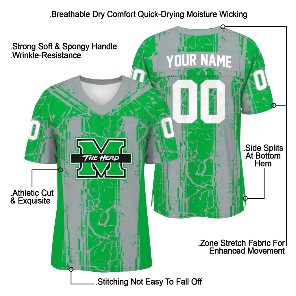 Marshall Thundering Herd Jersey – Custom Rugged Stripes Green