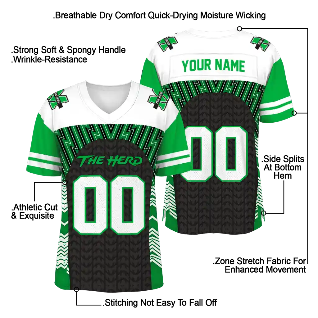 Marshall Thundering Herd Tire Jersey – Custom Arrows Green Black White