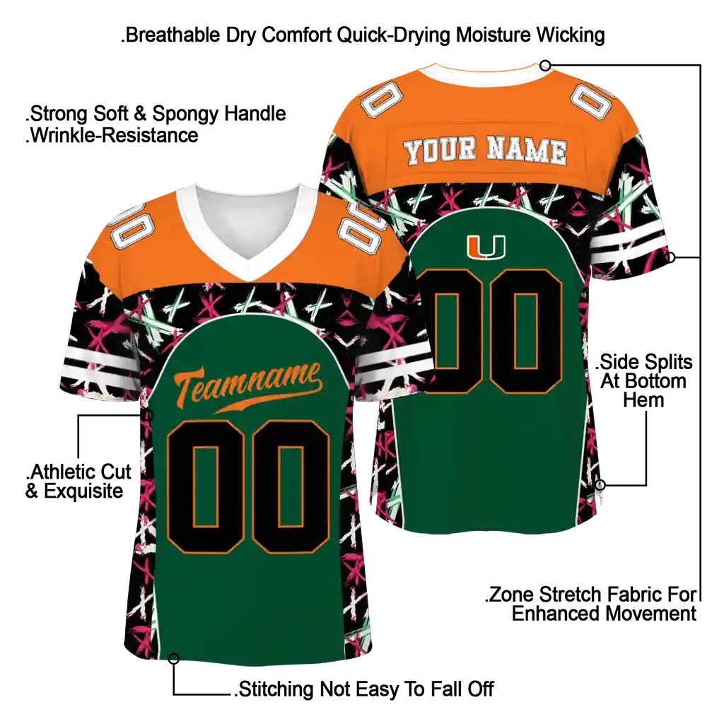 Miami Hurricanes Brushstroke Jersey – Custom Xs Green Black