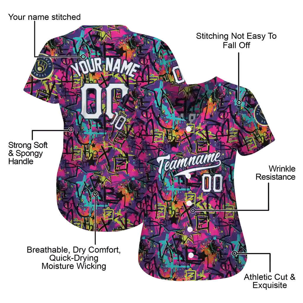 Milwaukee Brewers Jersey – Custom Graffiti Tag Pink and Blue