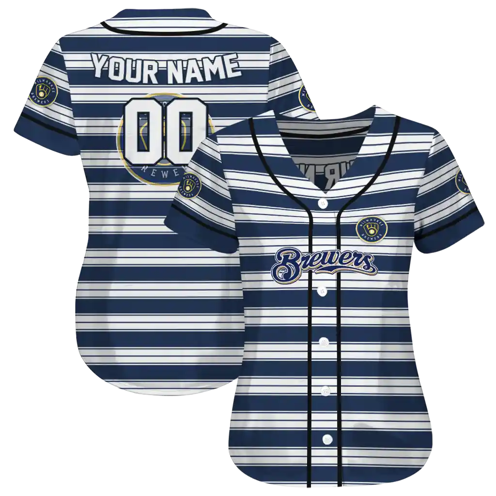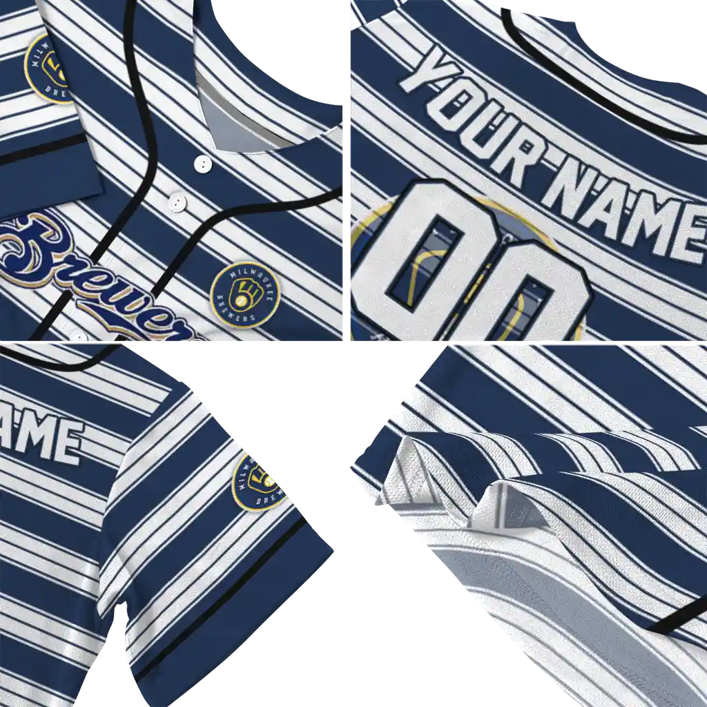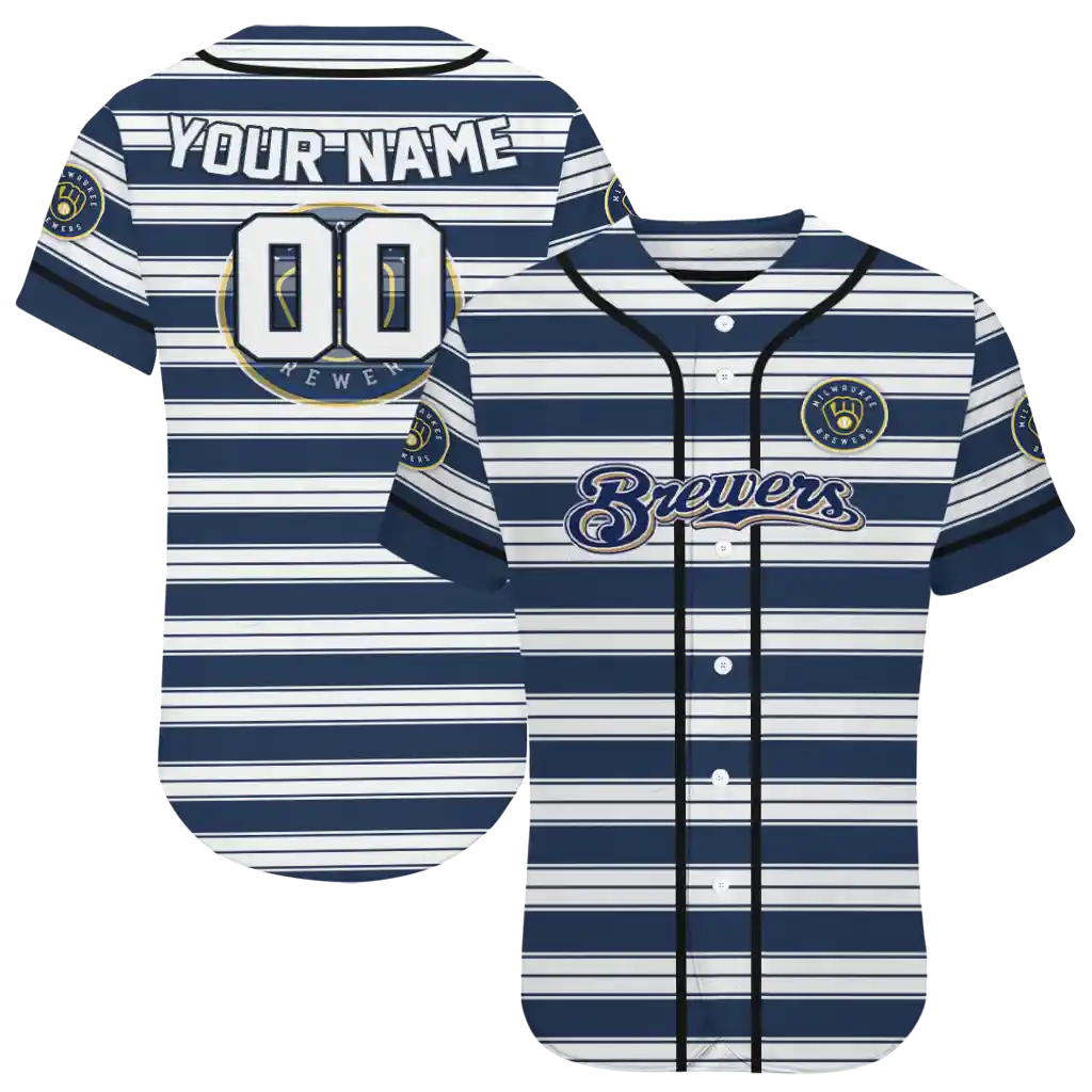 Milwaukee Brewers Jersey – Custom Stripe Layers Navy Blue White