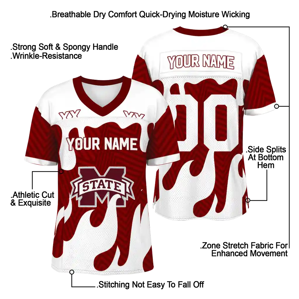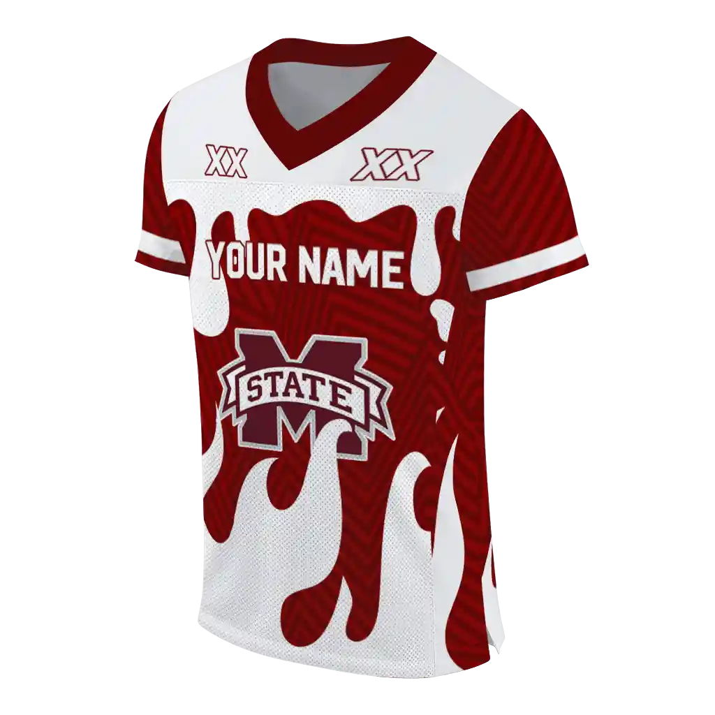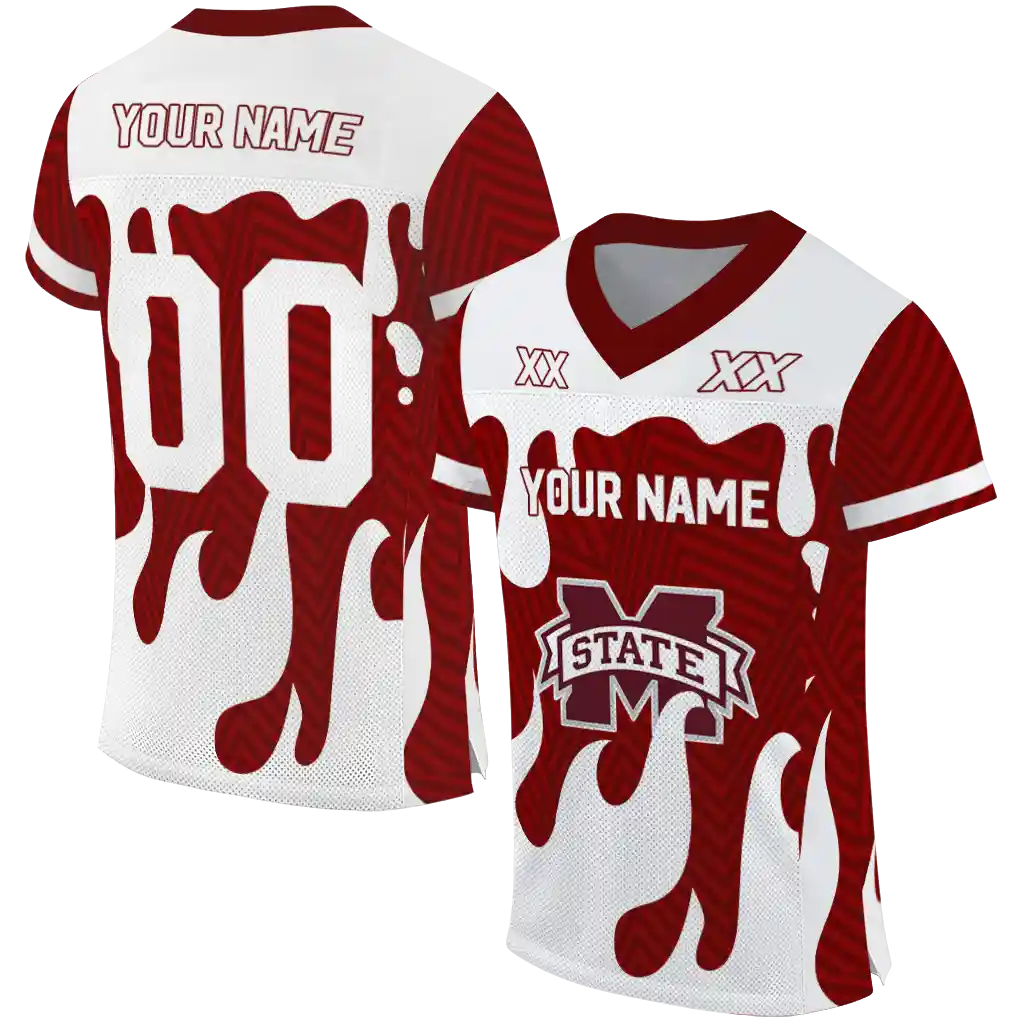 Mississippi State Bulldogs Jersey – Custom Dripping Flames Maroon White
