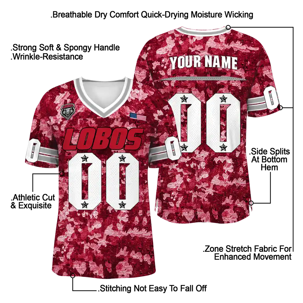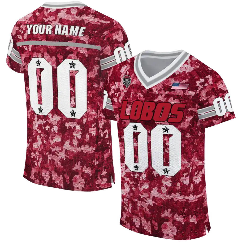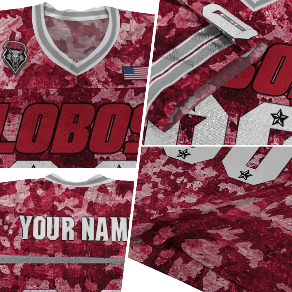 New Mexico Lobos Jersey – Custom Camouflage Abstract Red