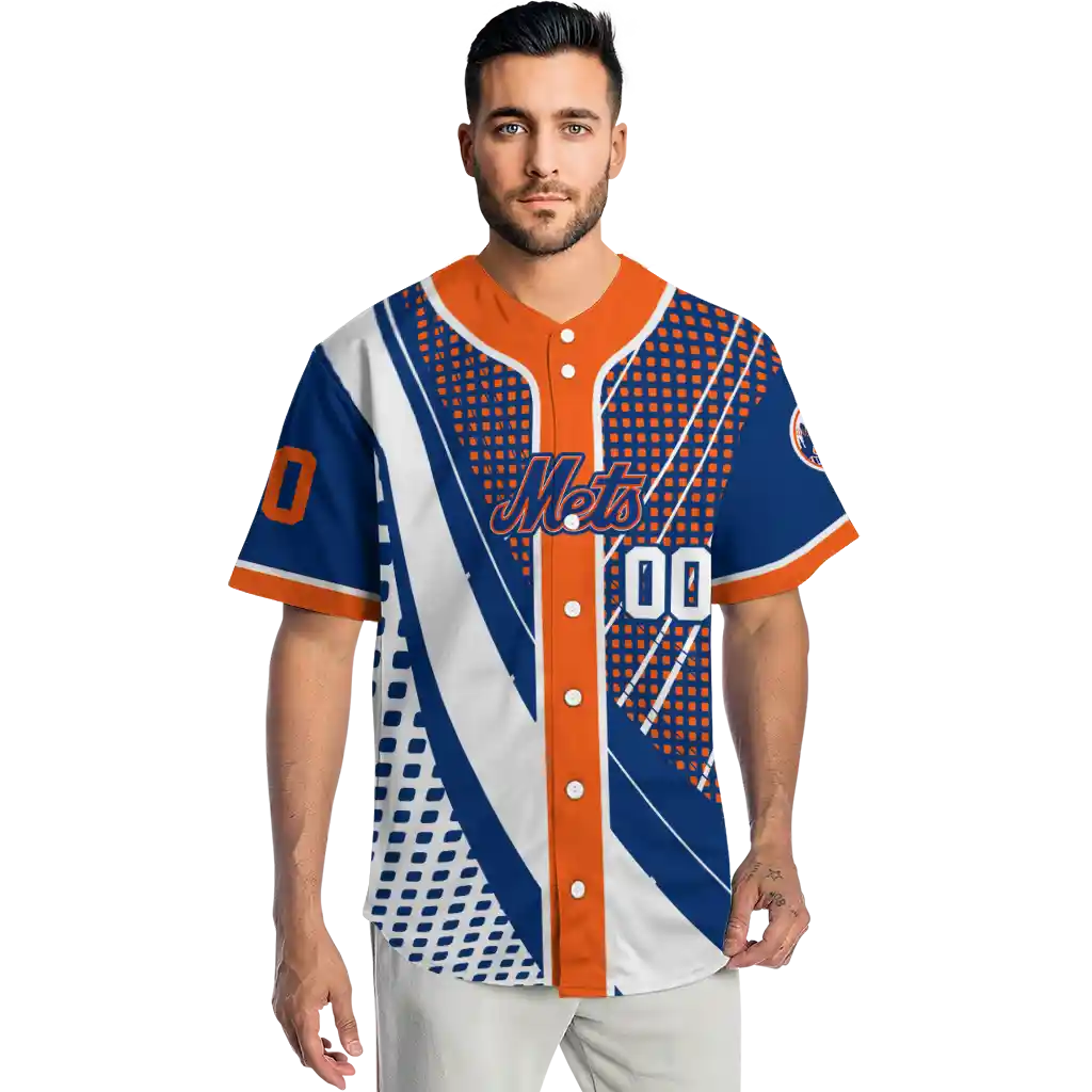 New York Mets Curved Jersey – Custom Stripes Blue White