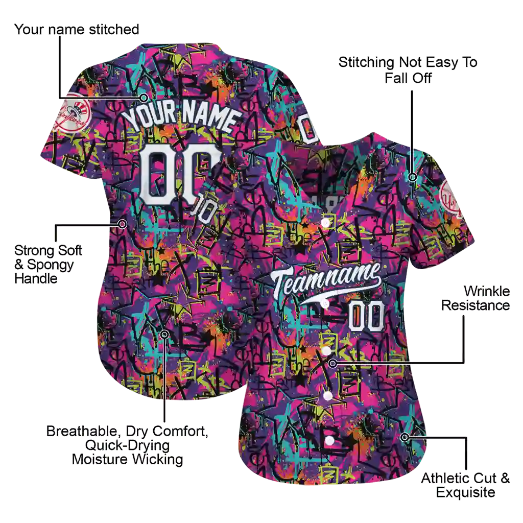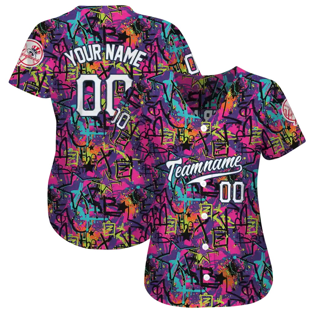 New York Jersey – Custom Yankees Graffiti Tag Purple and Black
