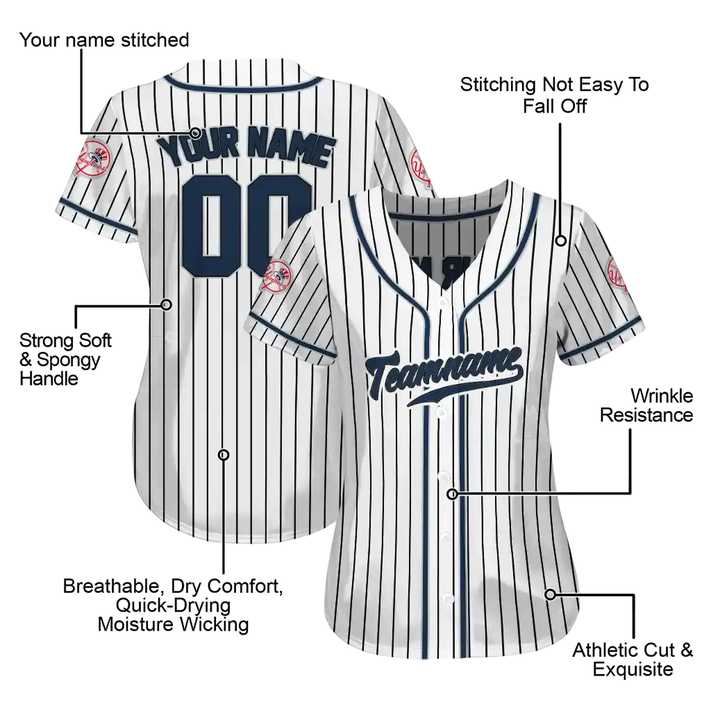 New York Yankees Jersey – Custom Pinstripe Lines White