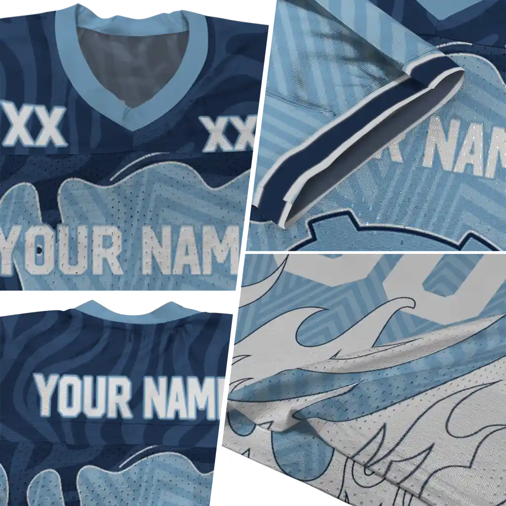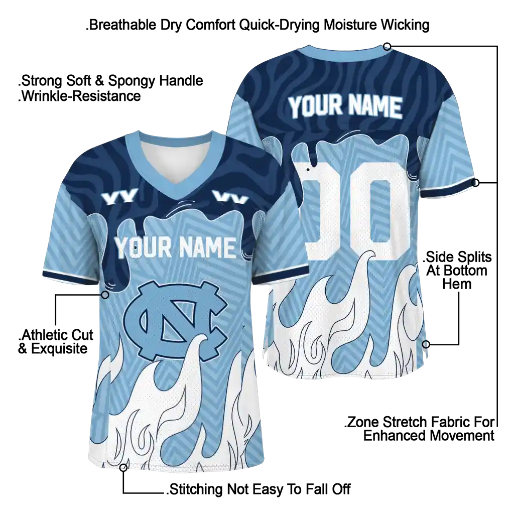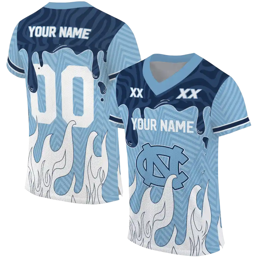 North Carolina Tar Heels Jersey – Custom Dripping Flames Light Blue White