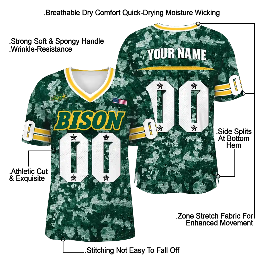 North Dakota State Bison Jersey – Custom Camouflage Abstract Green