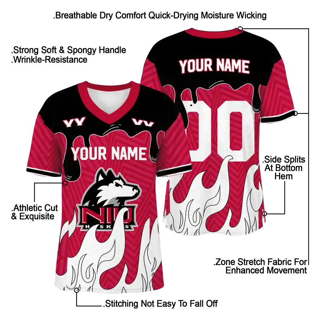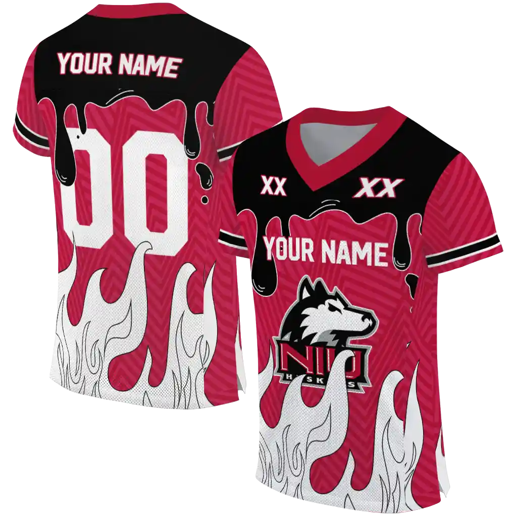 Northern Illinois Huskies Jersey – Custom Dripping Flames Red White