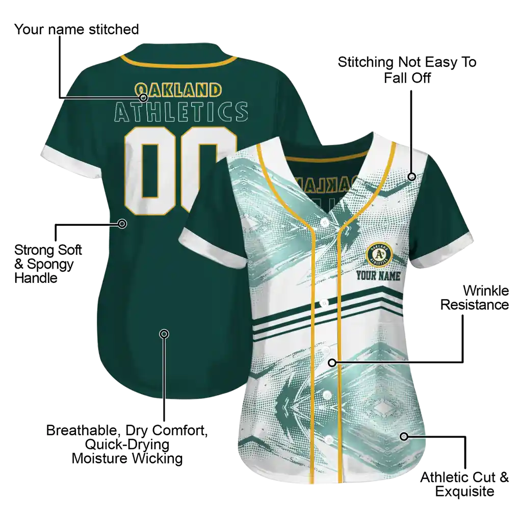The Oakland Athletics Jersey – Custom Arrow Fade Green White is engineered for fans who demand the perfect balance of style, comfort, and durability. Utilizing advanced sublimation technology, every inch of the fabric is printed with your custom design before being precision-cut and sewn to ensure a flawless, edge-to-edge visual impact.