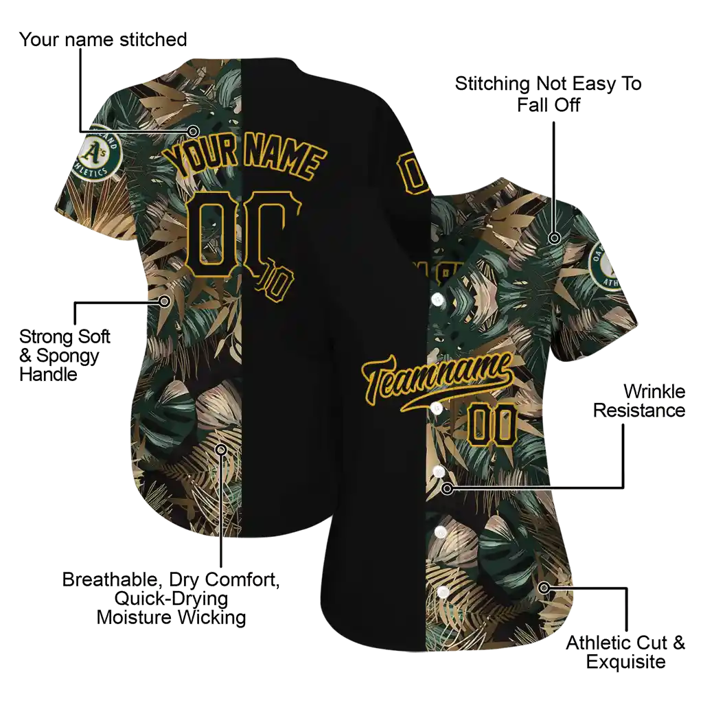 Oakland Athletics Jersey – Custom Tropical Foliage Black