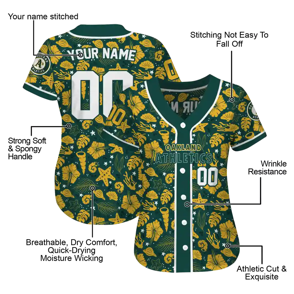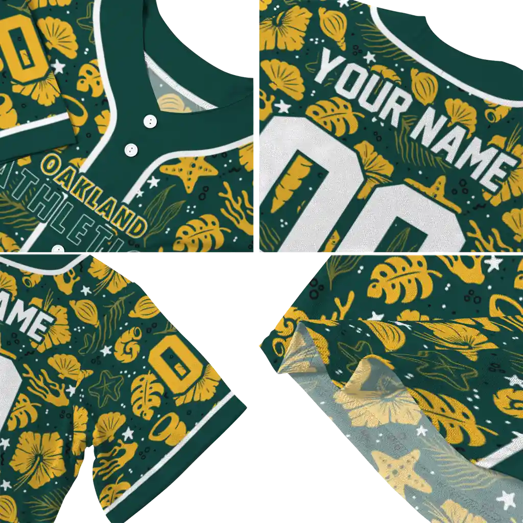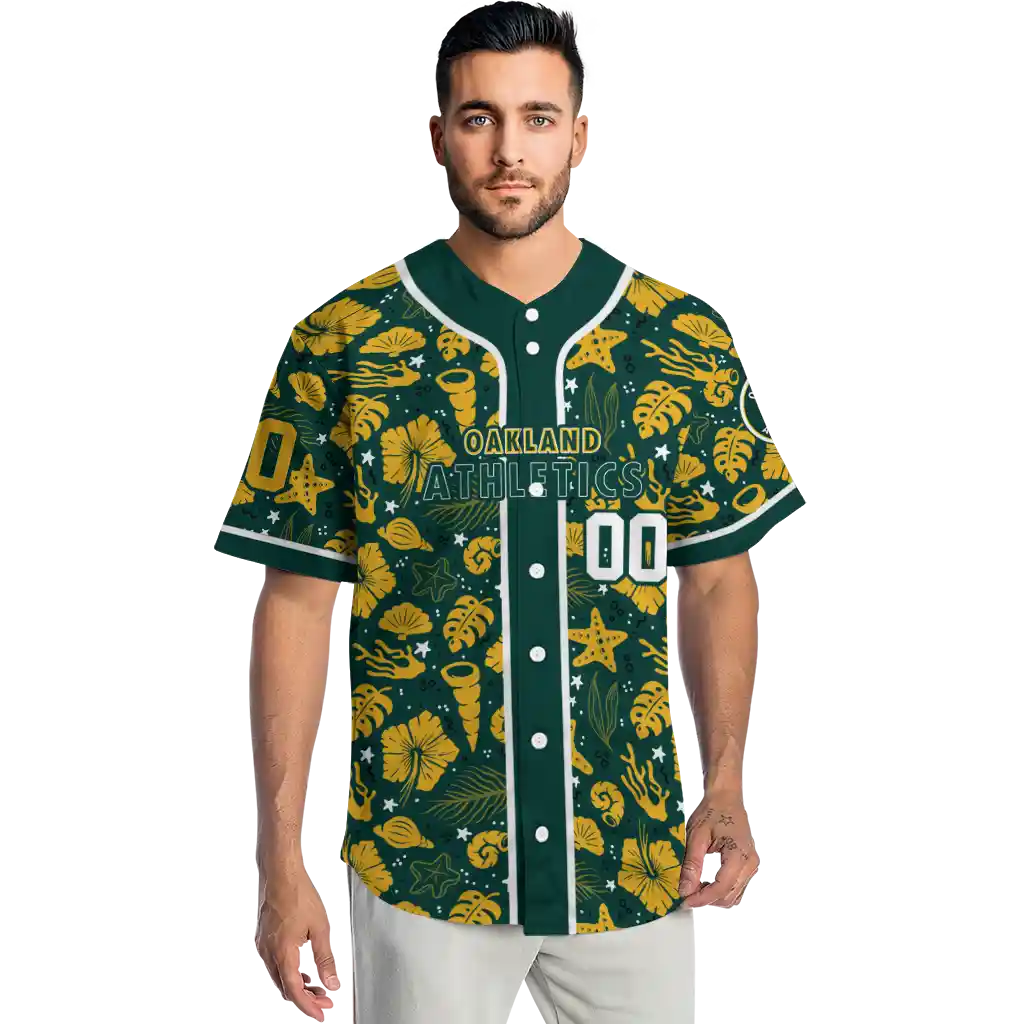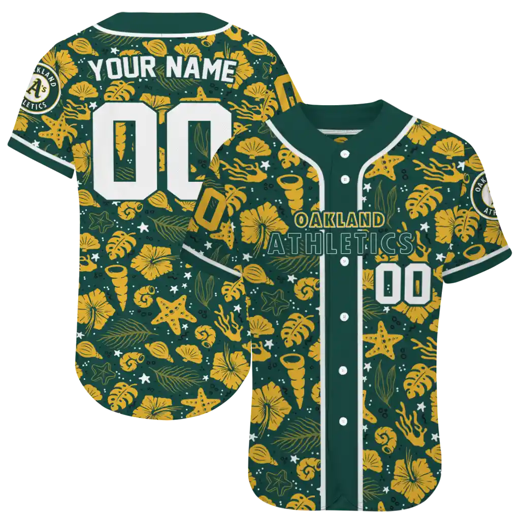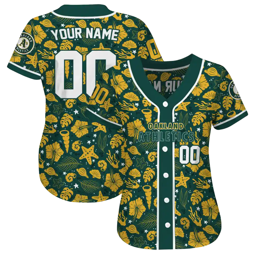 Oakland Athletics Jersey – Custom Tropical Hibiscus Seashells Green
