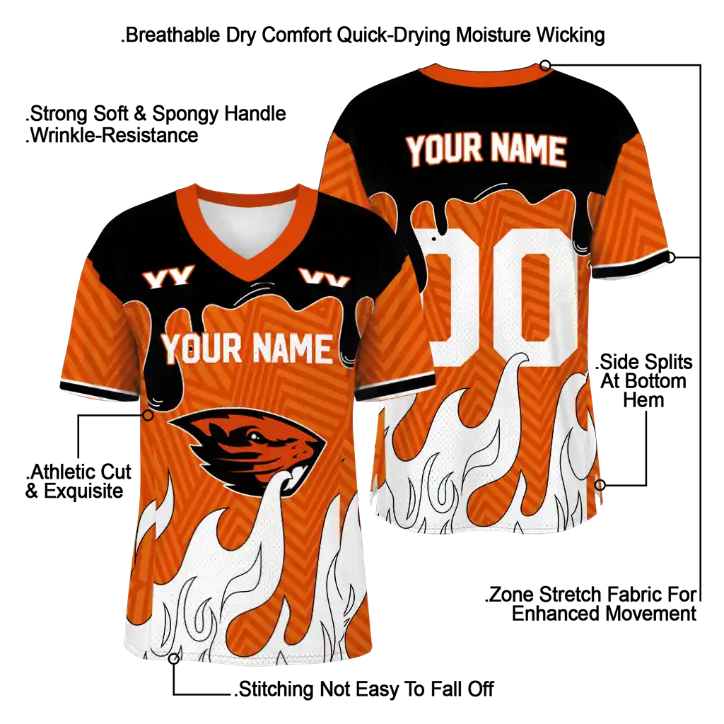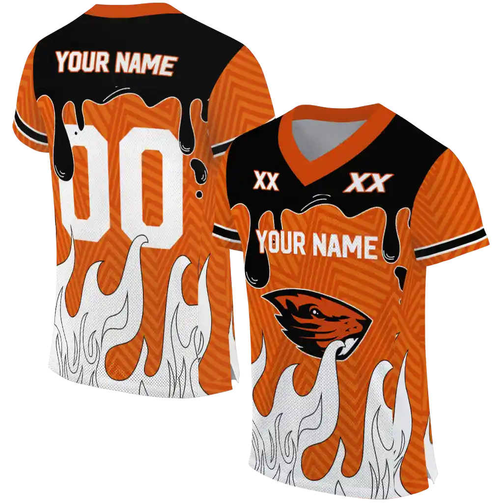 Oregon State Beavers Jersey – Custom Dripping Flames Orange White