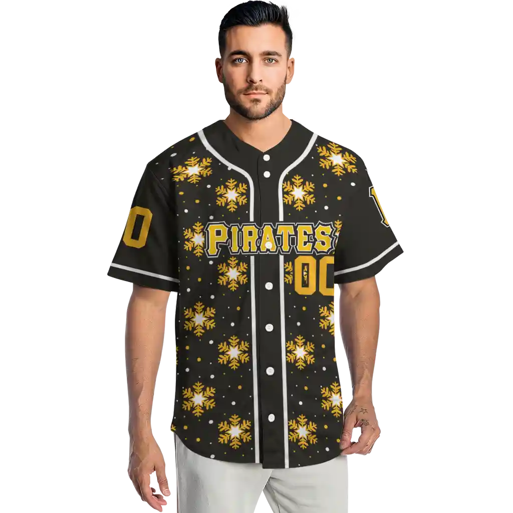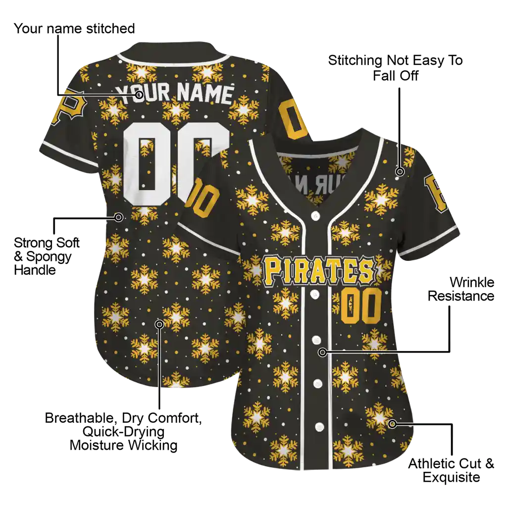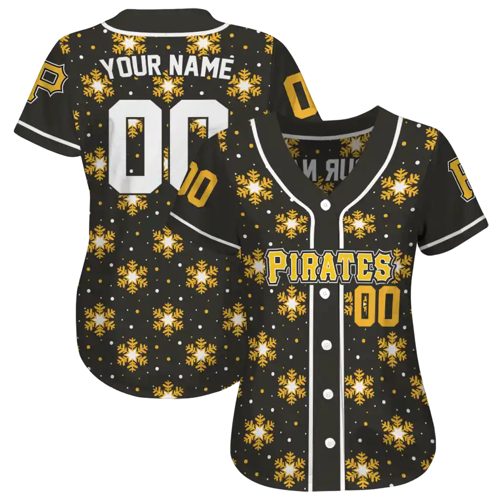 Pittsburgh Pirates Jersey – Custom Snowflake Festive Black
