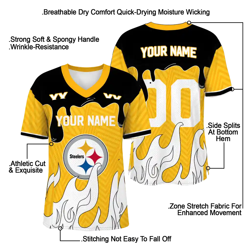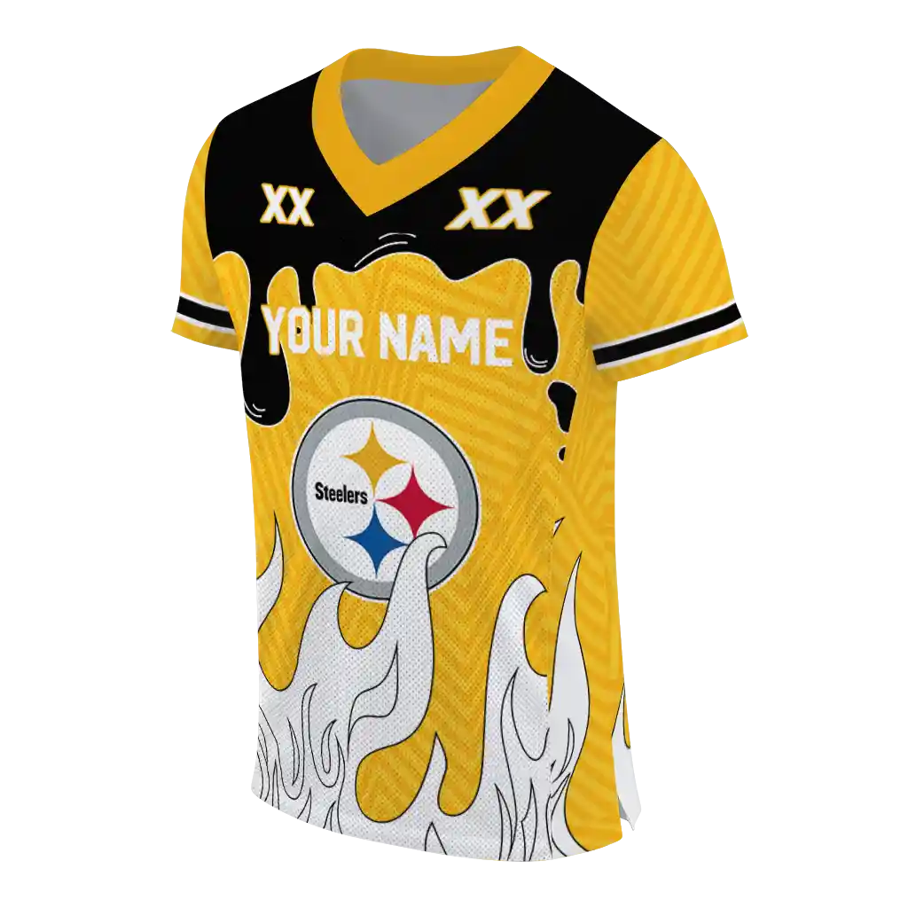 Pittsburgh Steelers Jersey – Custom Dripping Flames Gold White