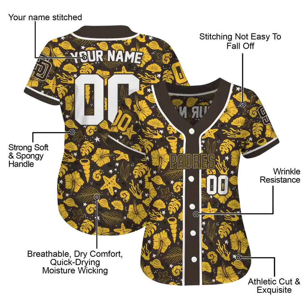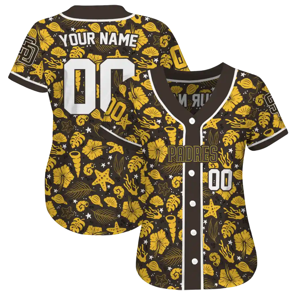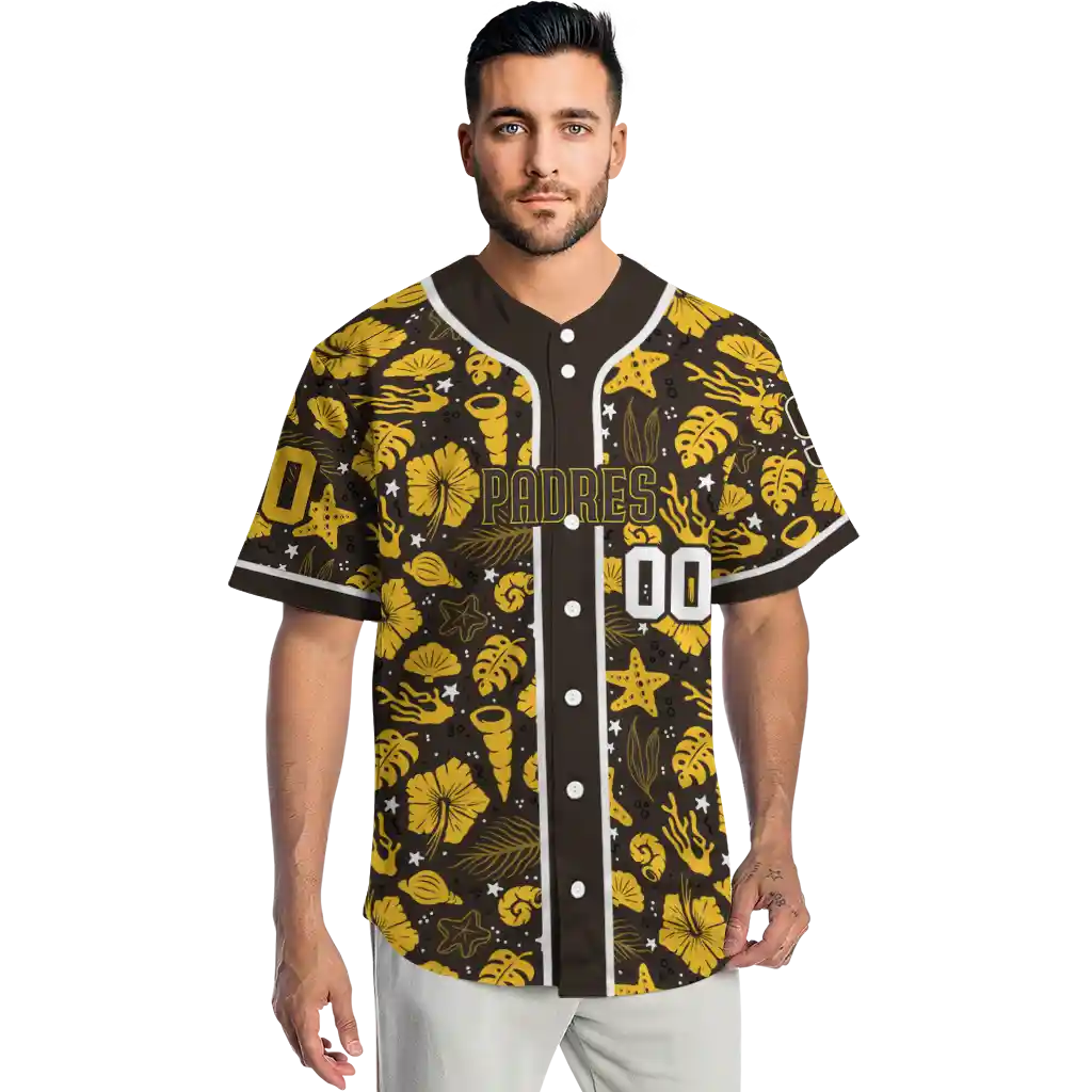 San Diego Padres Jersey – Custom Tropical Hibiscus Seashells Brown