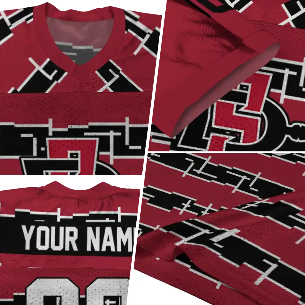 San Diego State Aztecs Jersey – Custom Layered Grids Red