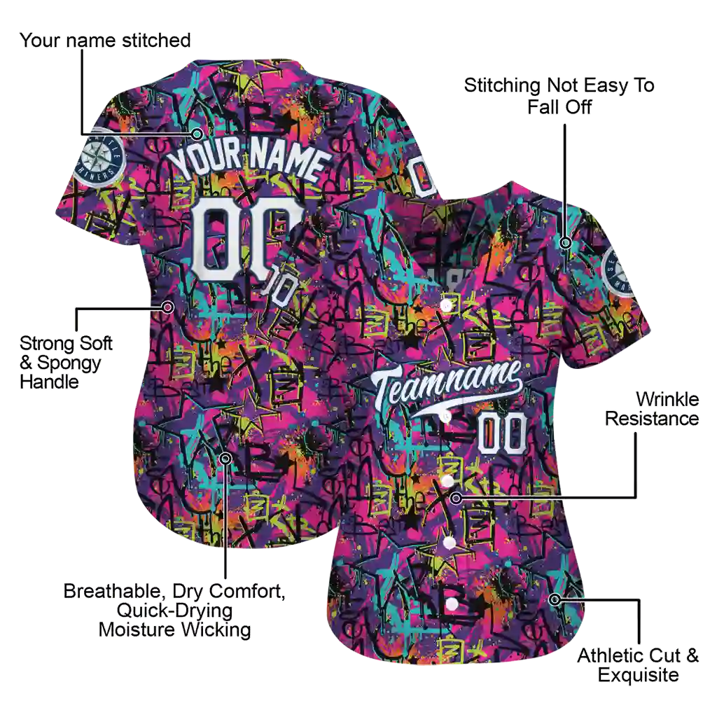 Seattle Mariners Jersey – Custom Graffiti Tag Pink and Black