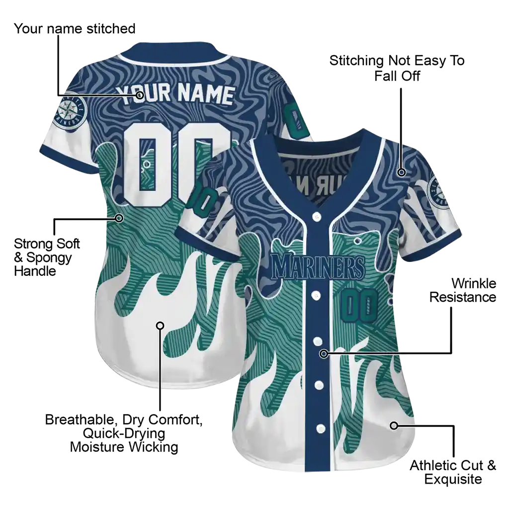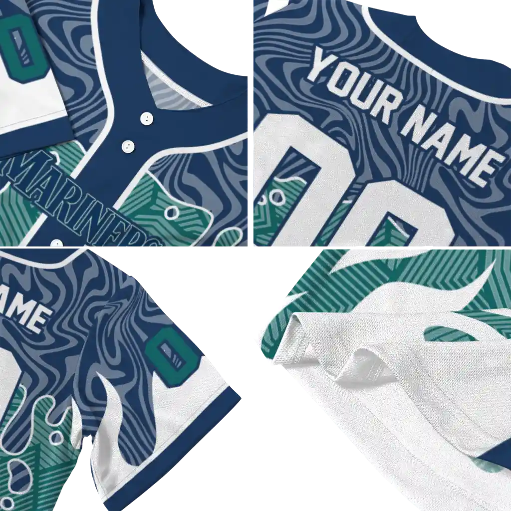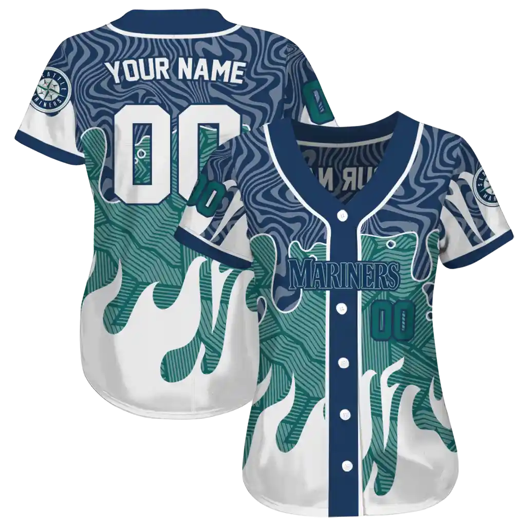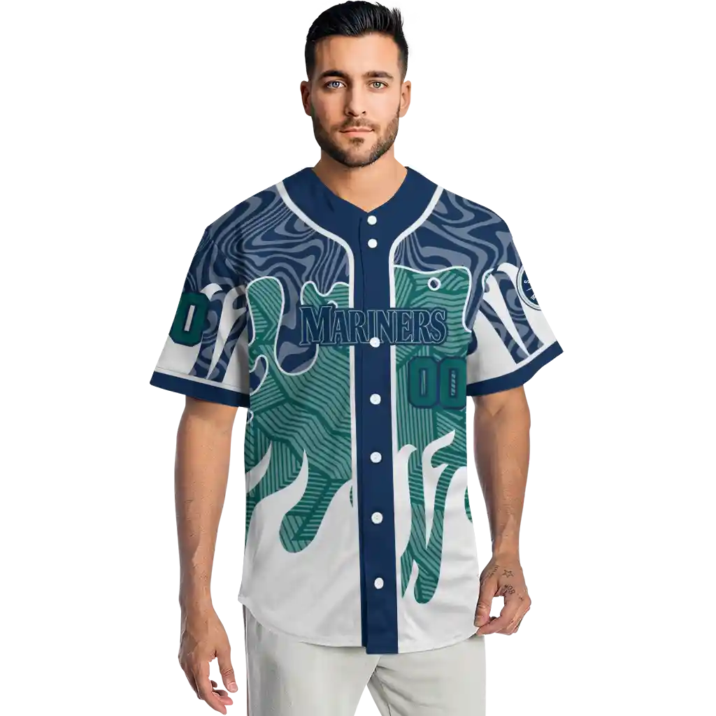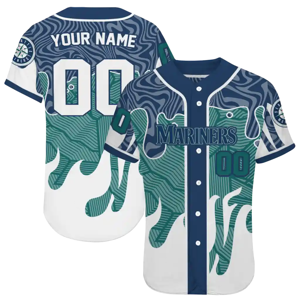 Seattle Mariners Jersey – Custom Pattern Drip Navy Blue White