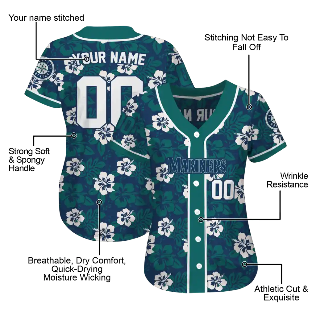 Seattle Mariners Jersey – Custom Tropical Hibiscus Green