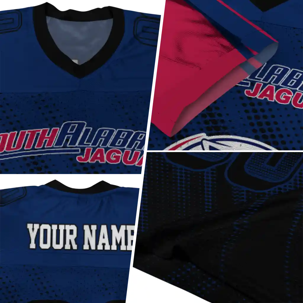 South Alabama Jaguars Jersey – Custom Halftone Flow Blue Black