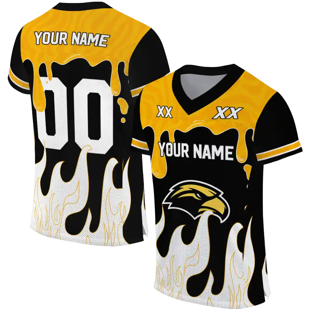 Southern Miss Golden Eagles Jersey – Custom Dripping Flames Black White