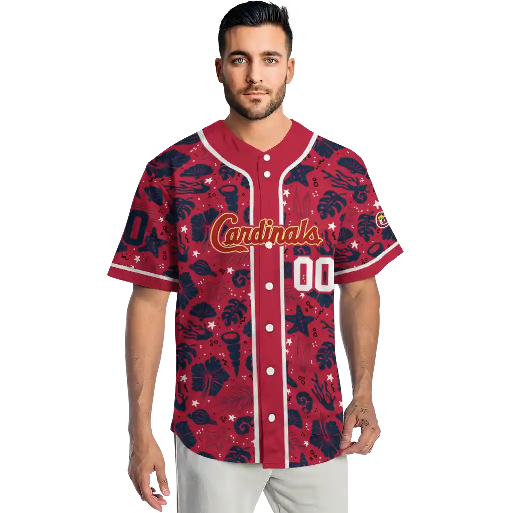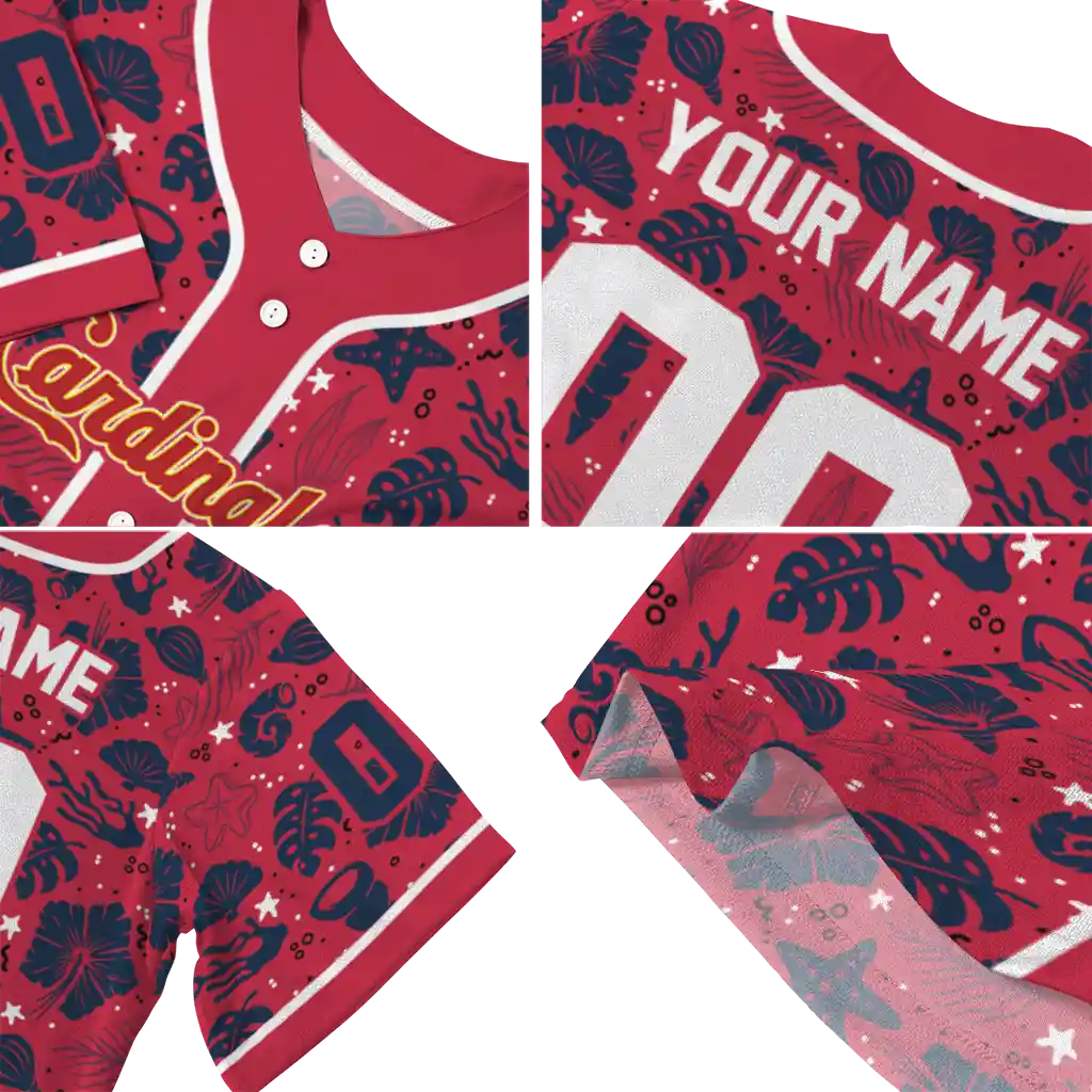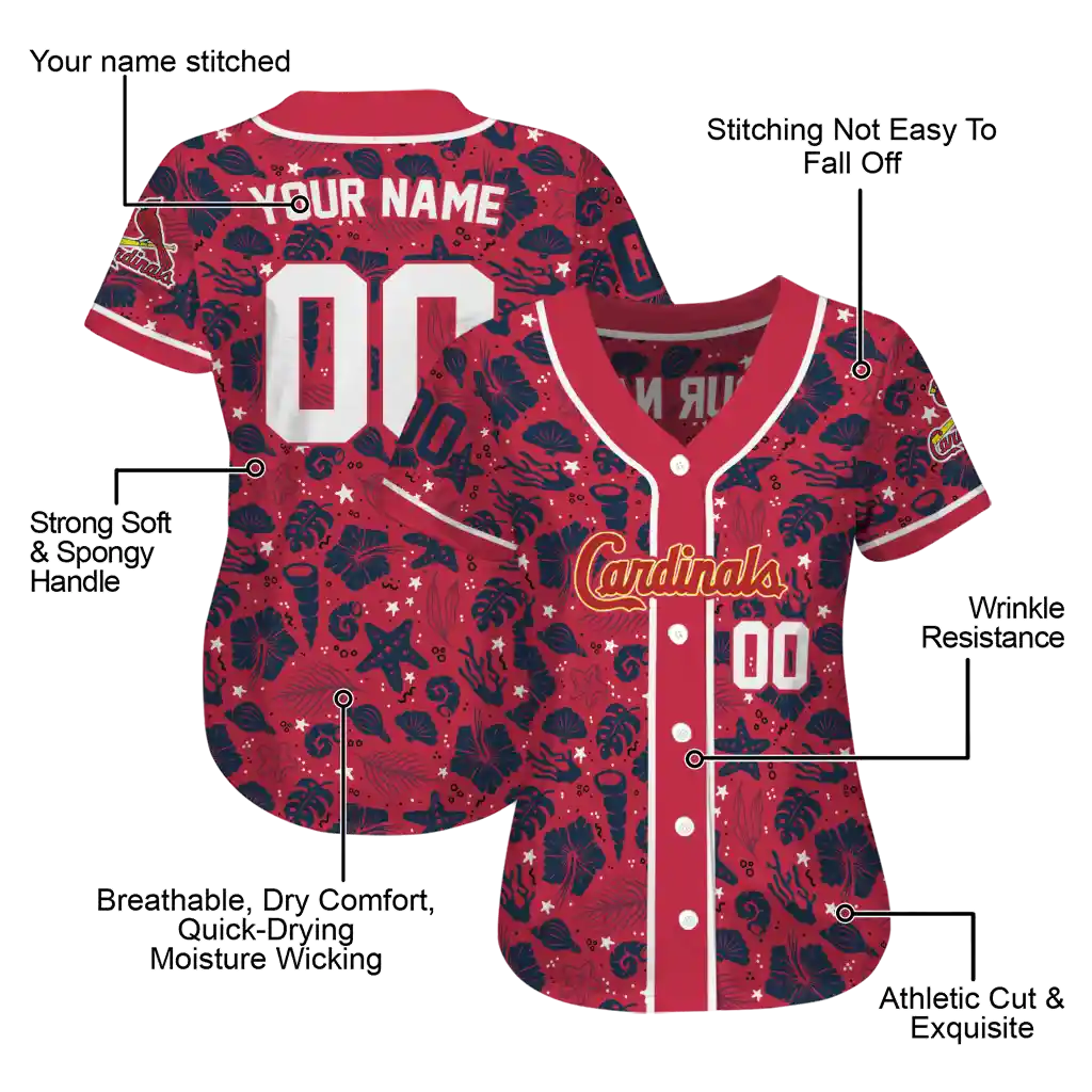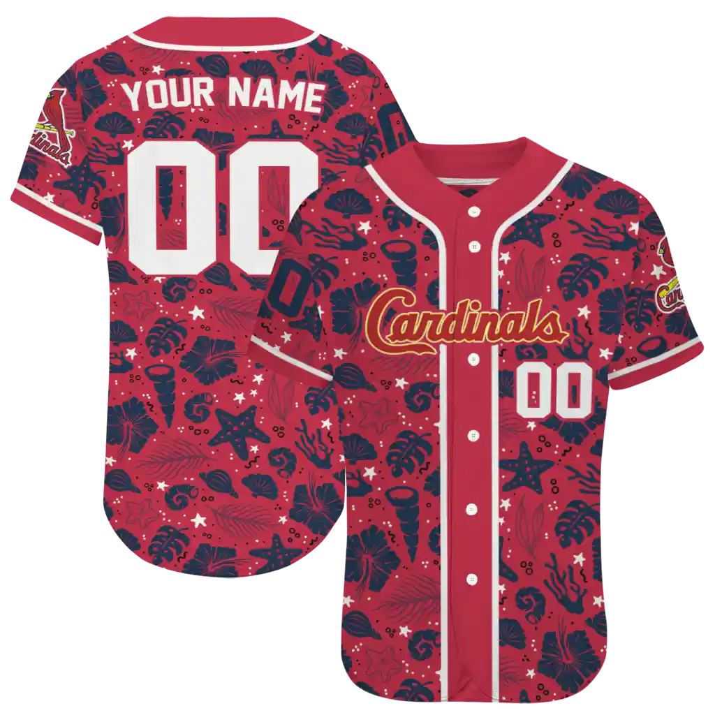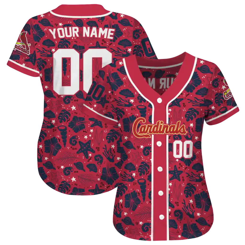 St. Louis Cardinals Jersey – Custom Tropical Hibiscus Seashells Red