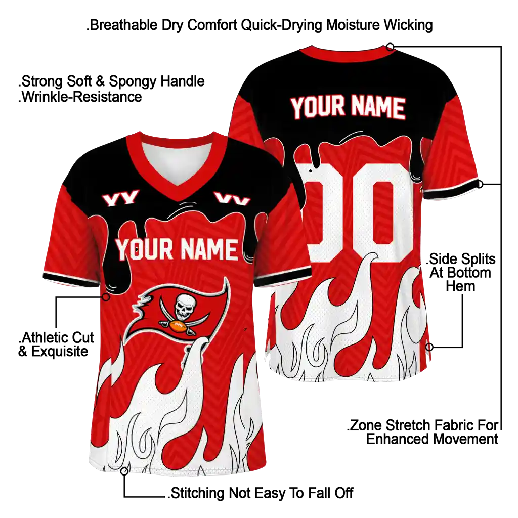 Tampa Bay Buccaneers Jersey – Custom Dripping Flames Red White