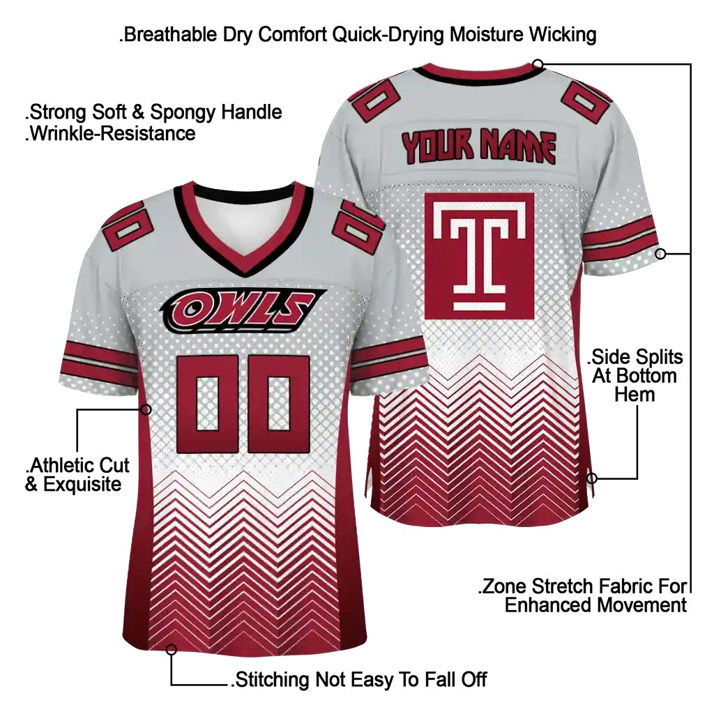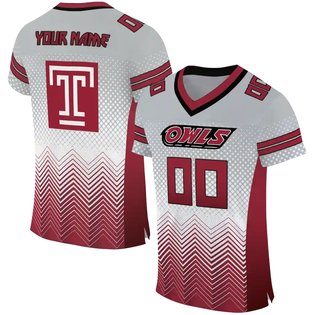 Temple Owls Jersey – Custom Halftone Sweep Silver Black