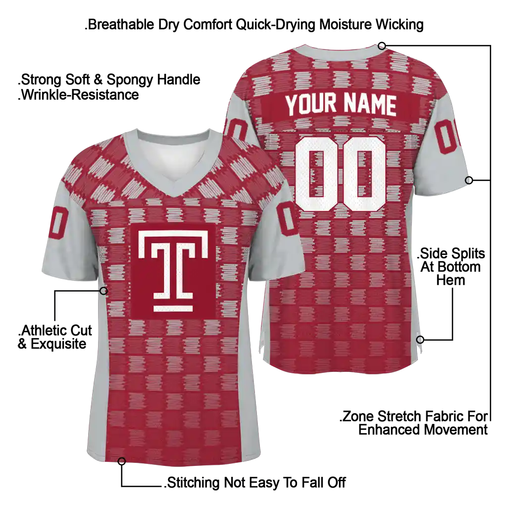 Temple Owls Jersey – Custom Stacked Rectangle Red