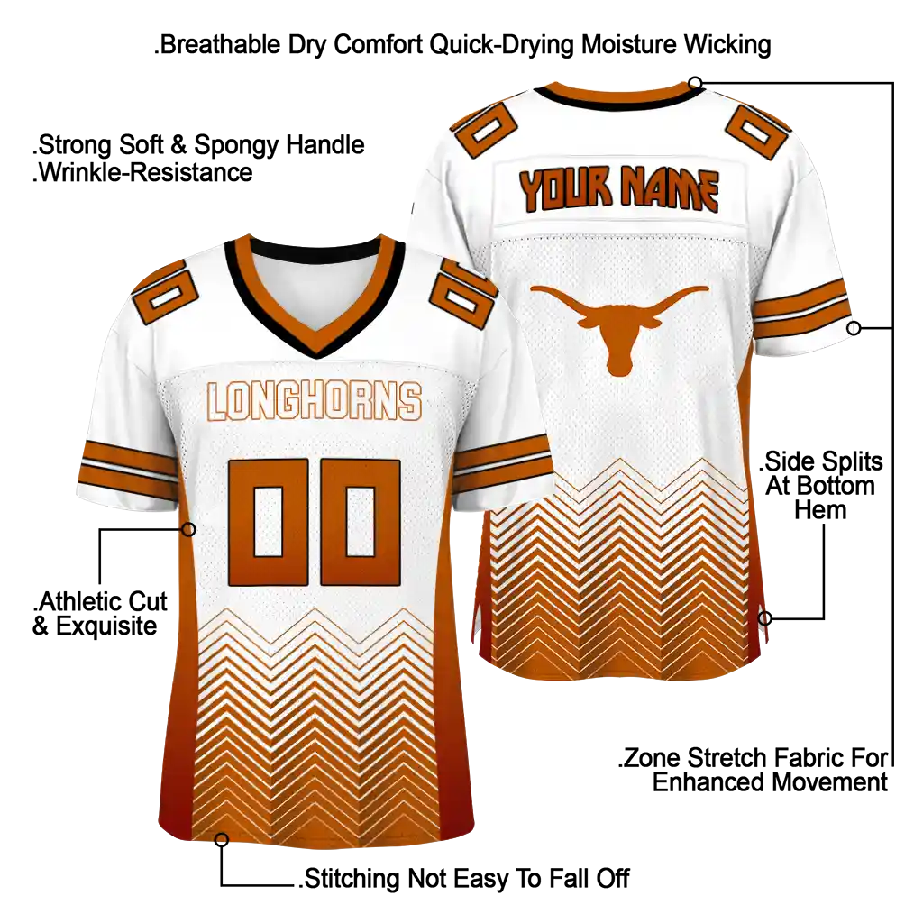 Texas Longhorns Jersey – Custom Halftone Sweep White Black
