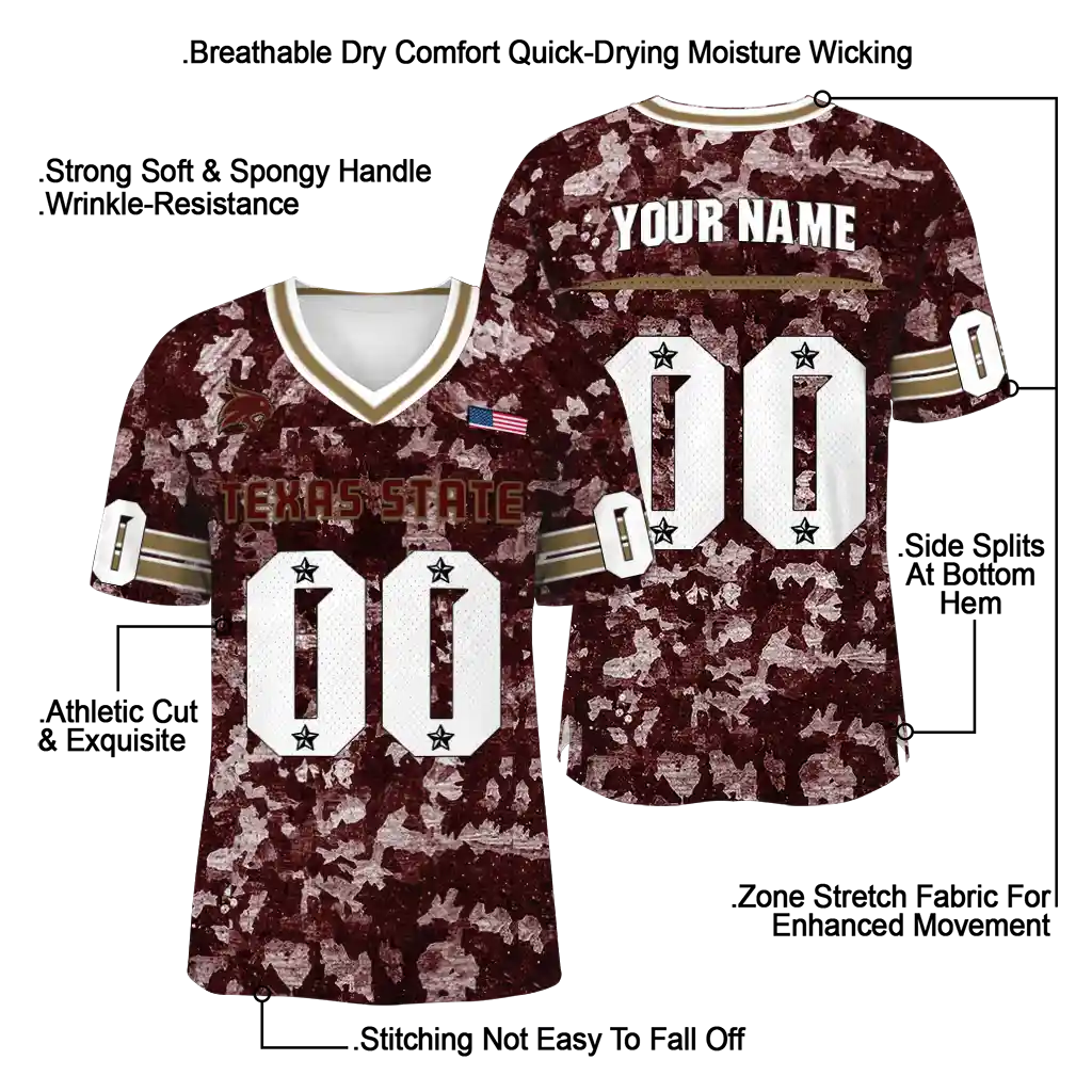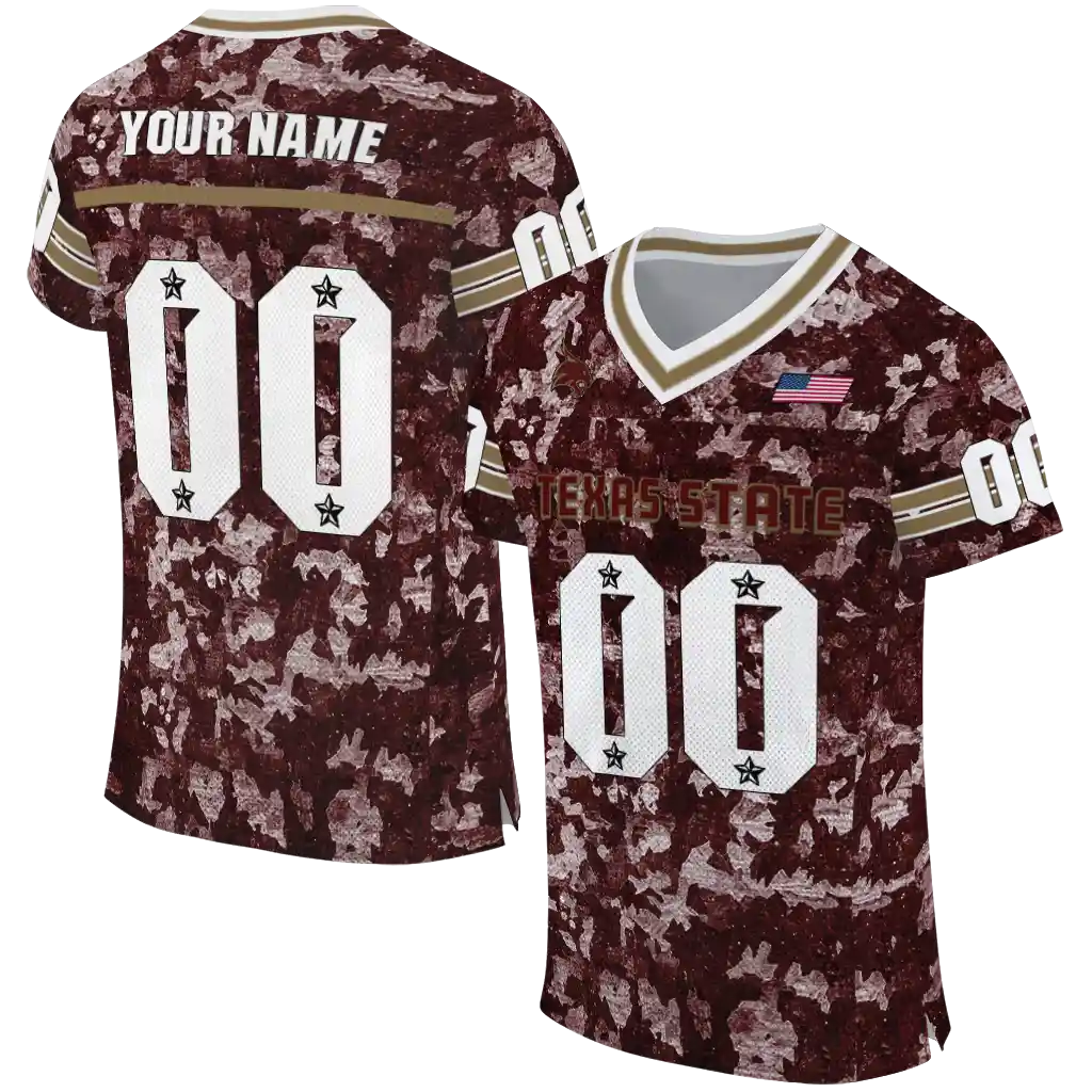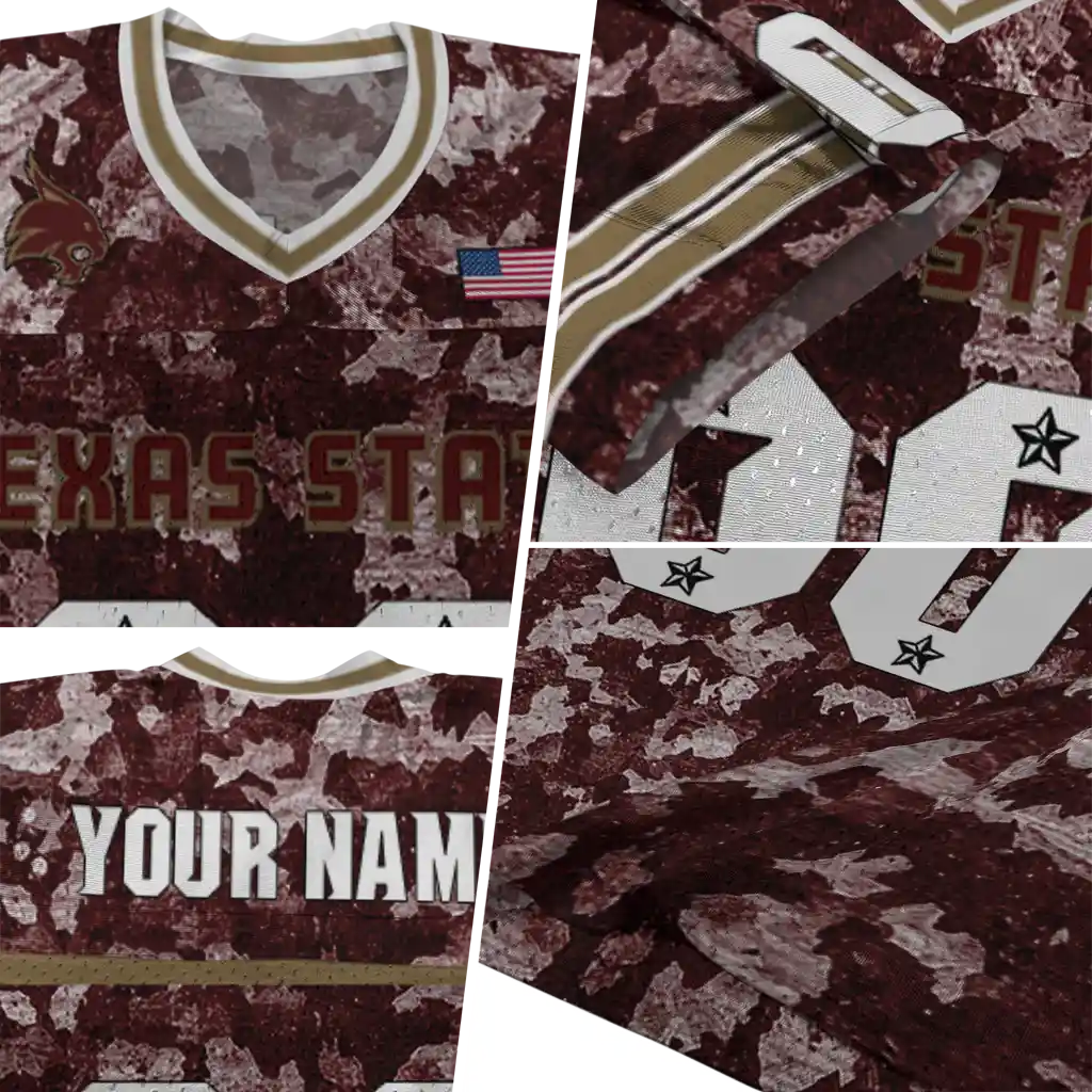 Texas State Bobcats Jersey – Custom Camouflage Abstract Maroon