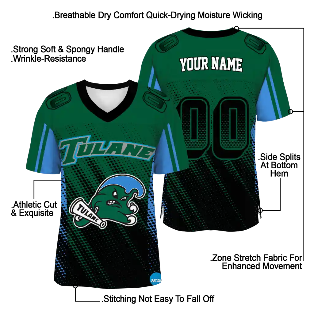 Tulane Green Wave Jersey – Custom Halftone Flow Green Black